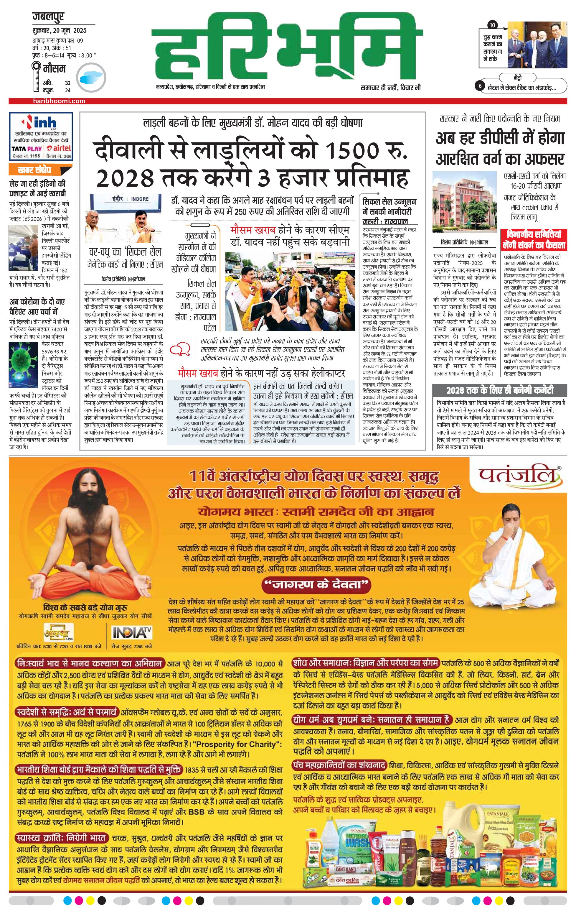 जबलपुर- मुख्य संस्करण - 20 Jun 2025 - - Page 1