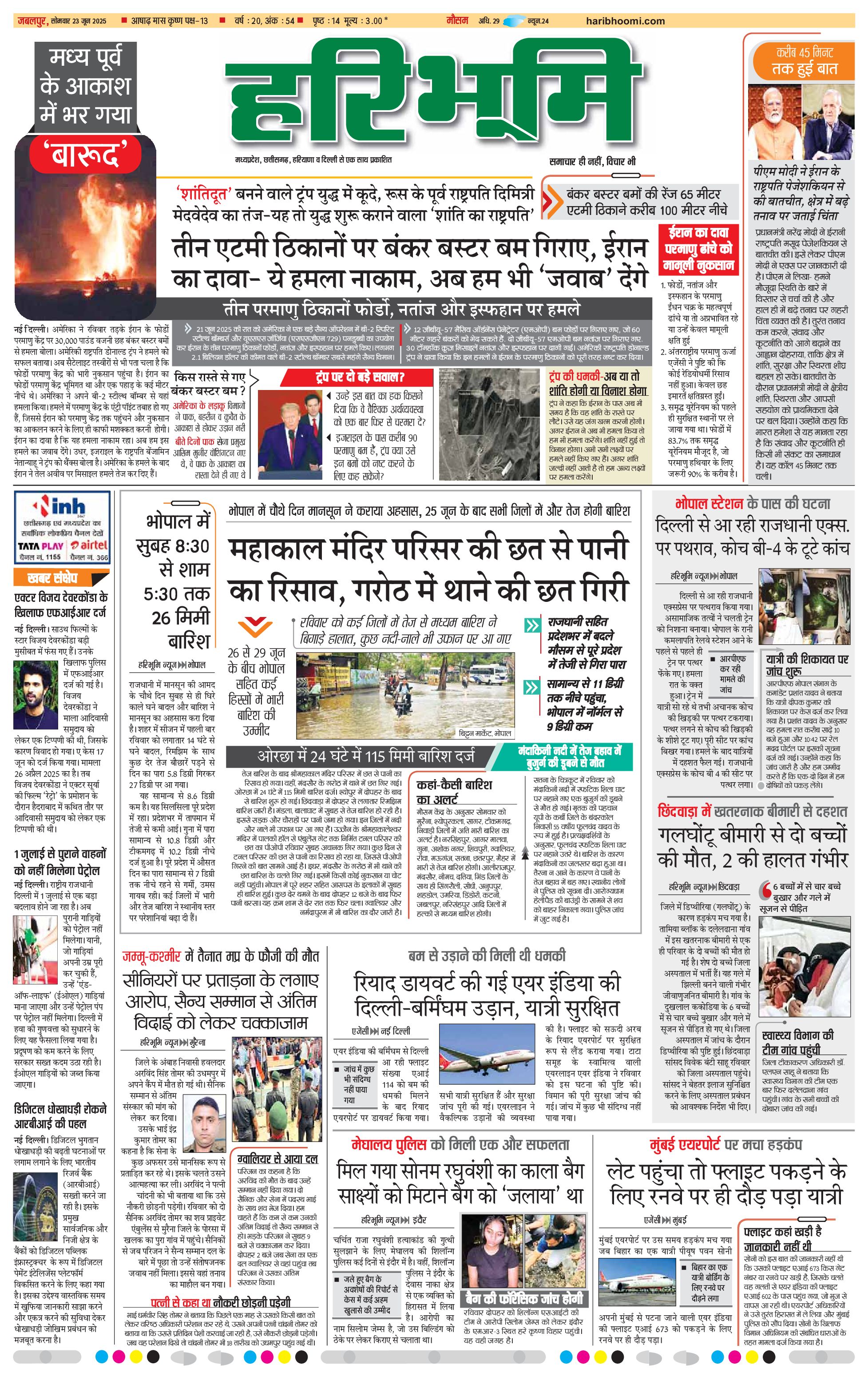 जबलपुर- मुख्य संस्करण - 23 Jun 2025 - - Page 1
