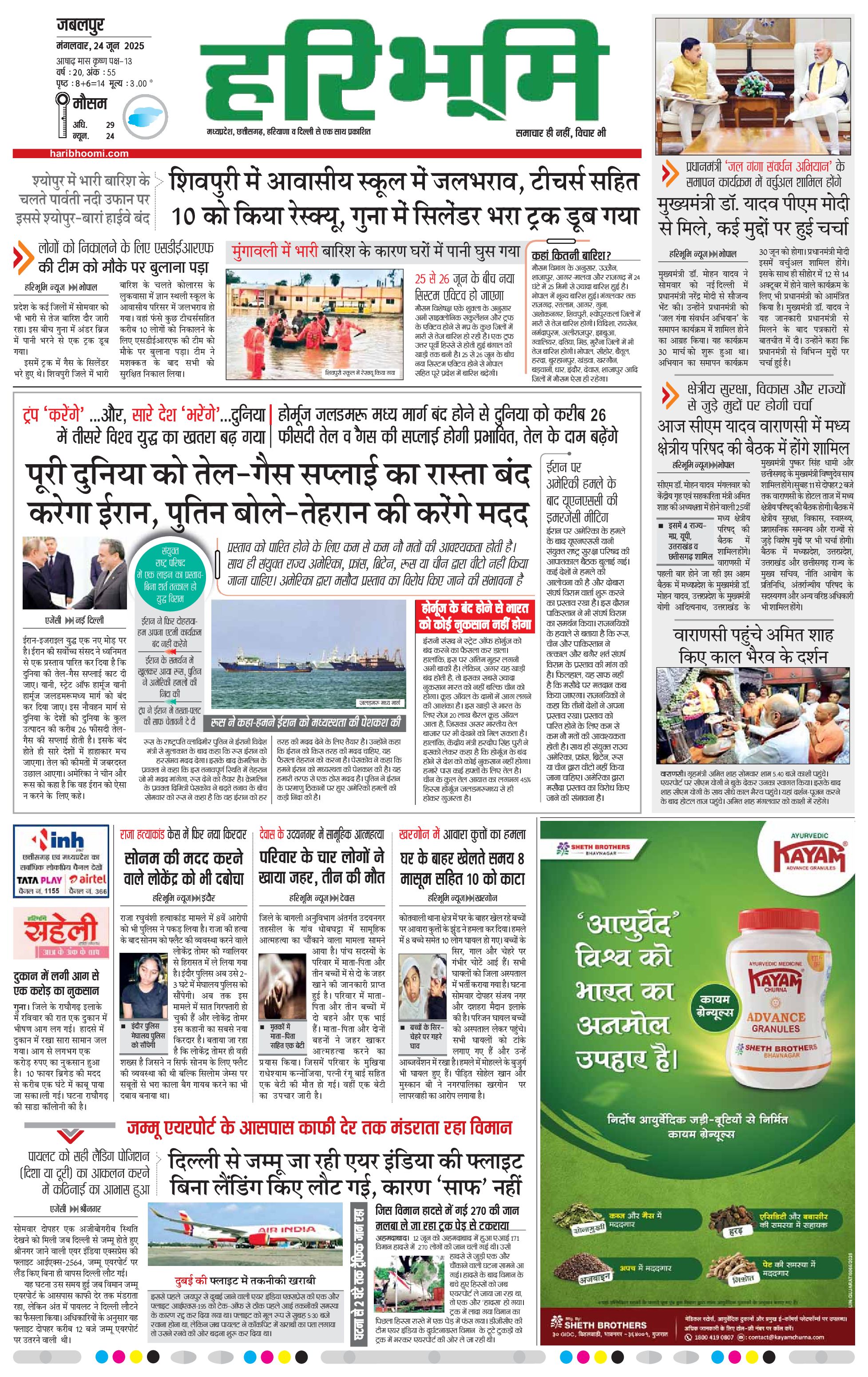 जबलपुर- मुख्य संस्करण - 24 Jun 2025 - - Page 1