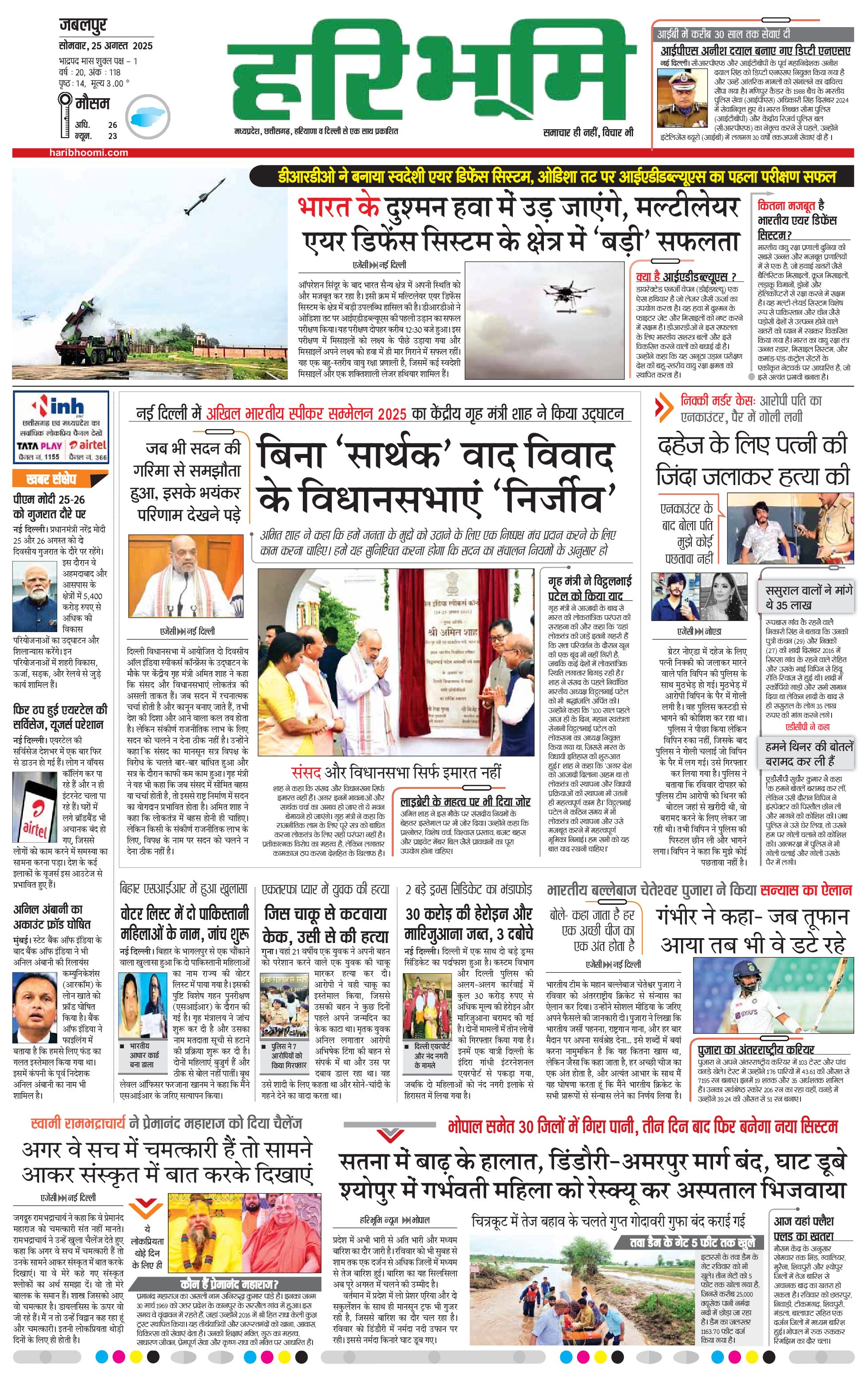 जबलपुर- मुख्य संस्करण - 25 Aug 2025 - - Page 1