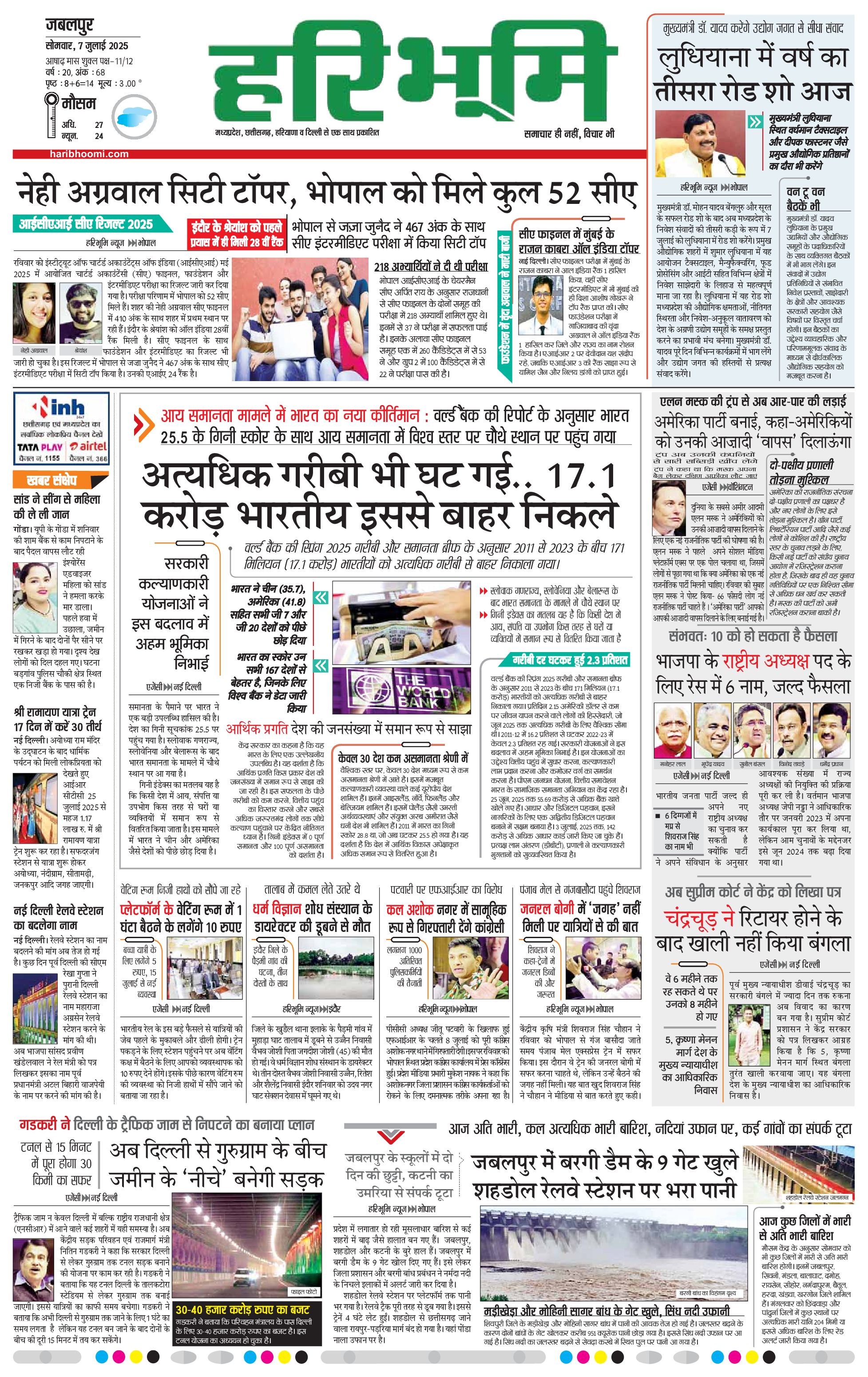 जबलपुर- मुख्य संस्करण - 07 Jul 2025 - - Page 1