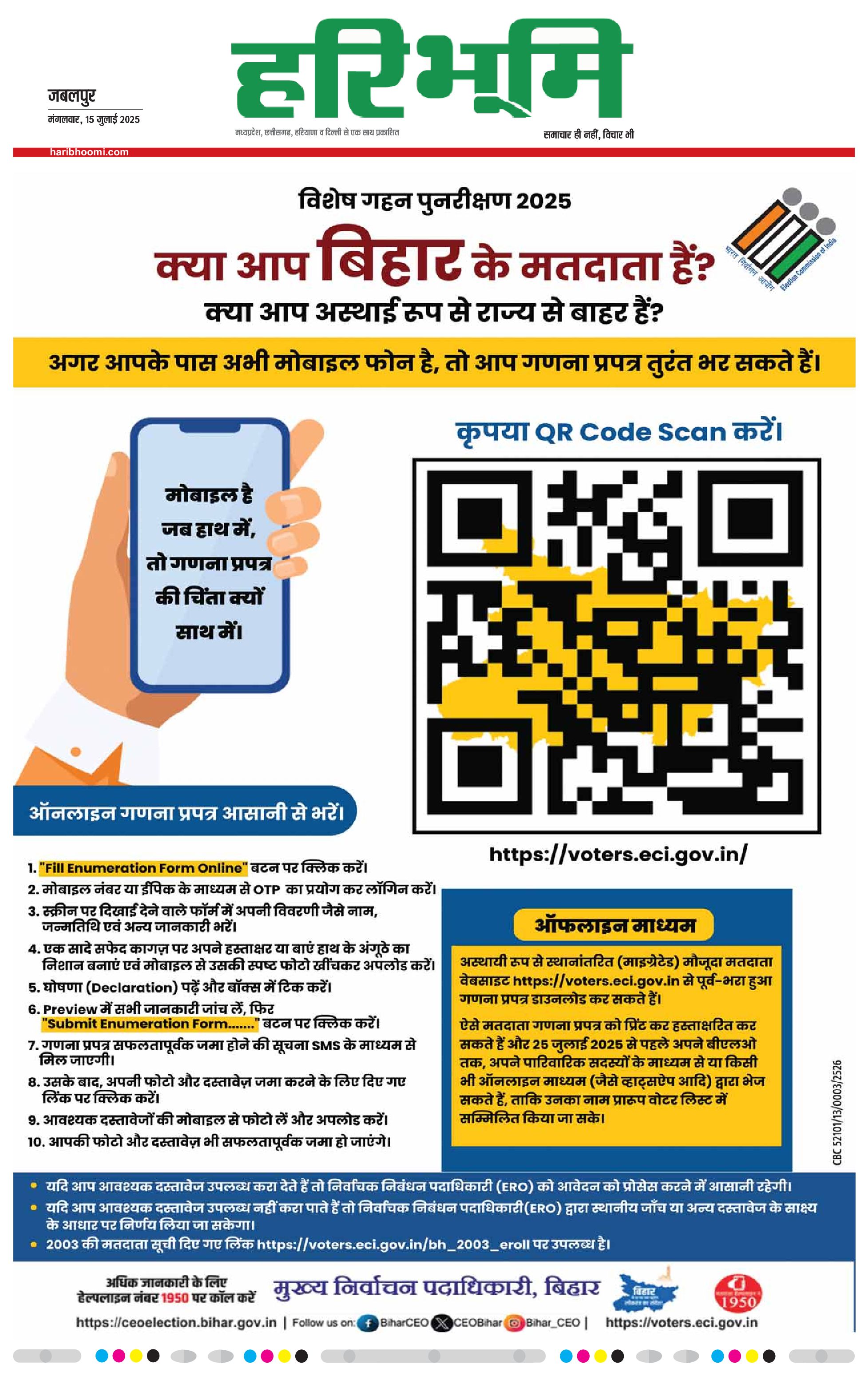 जबलपुर- मुख्य संस्करण - 15 Jul 2025 - - Page 1
