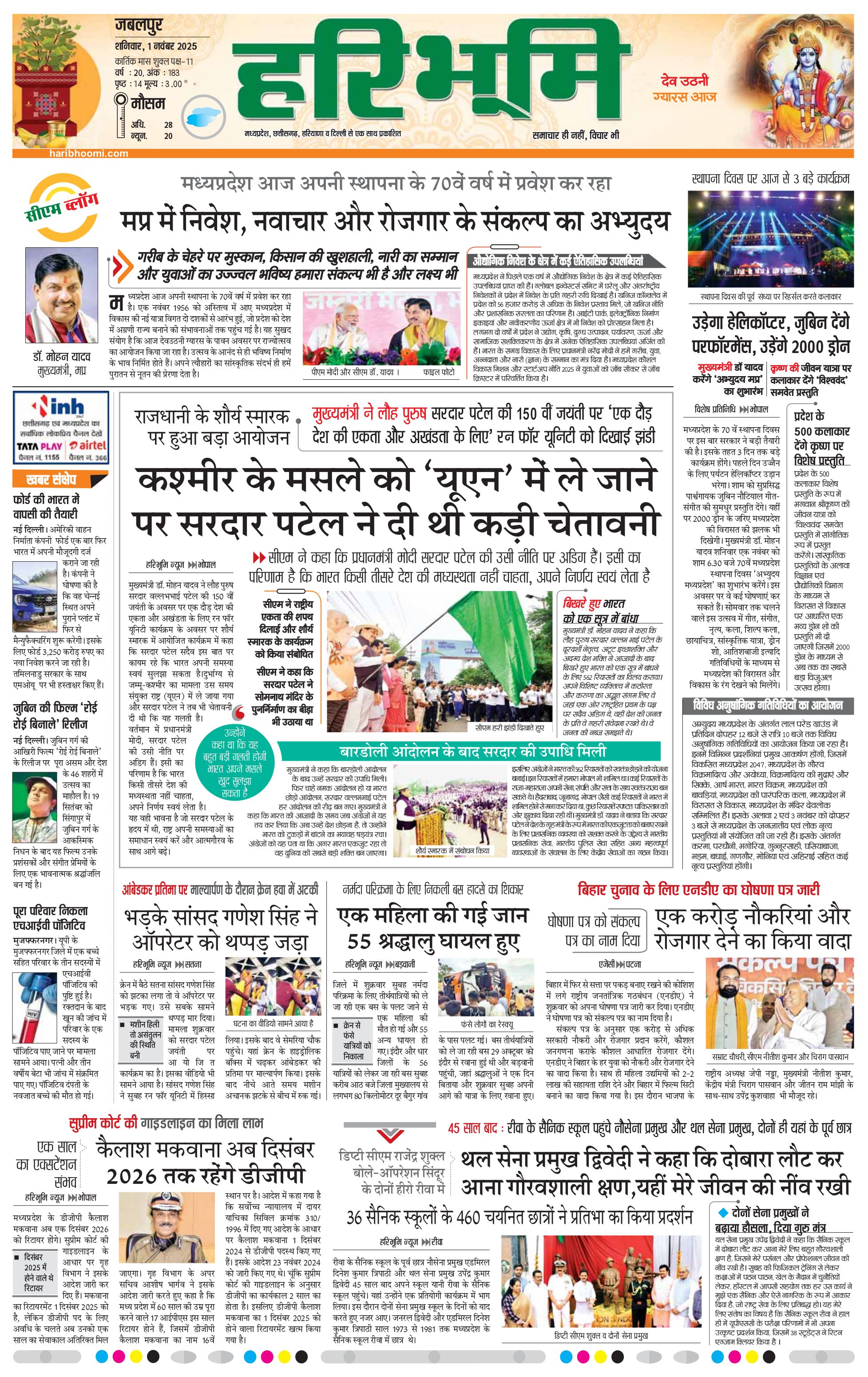 जबलपुर- मुख्य संस्करण - 01 Nov 2025 - - Page 1