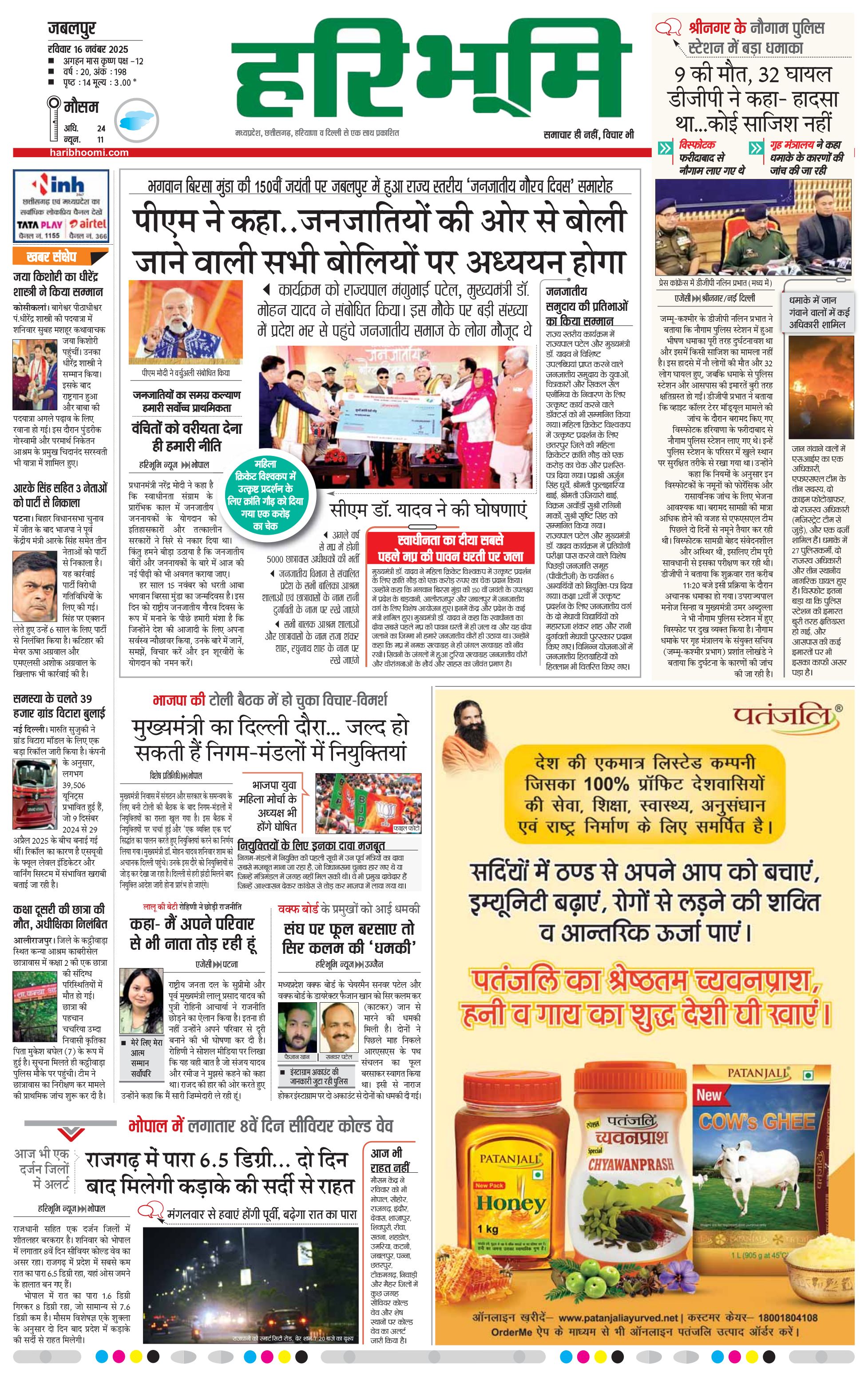 जबलपुर- मुख्य संस्करण - 16 Nov 2025 - - Page 1