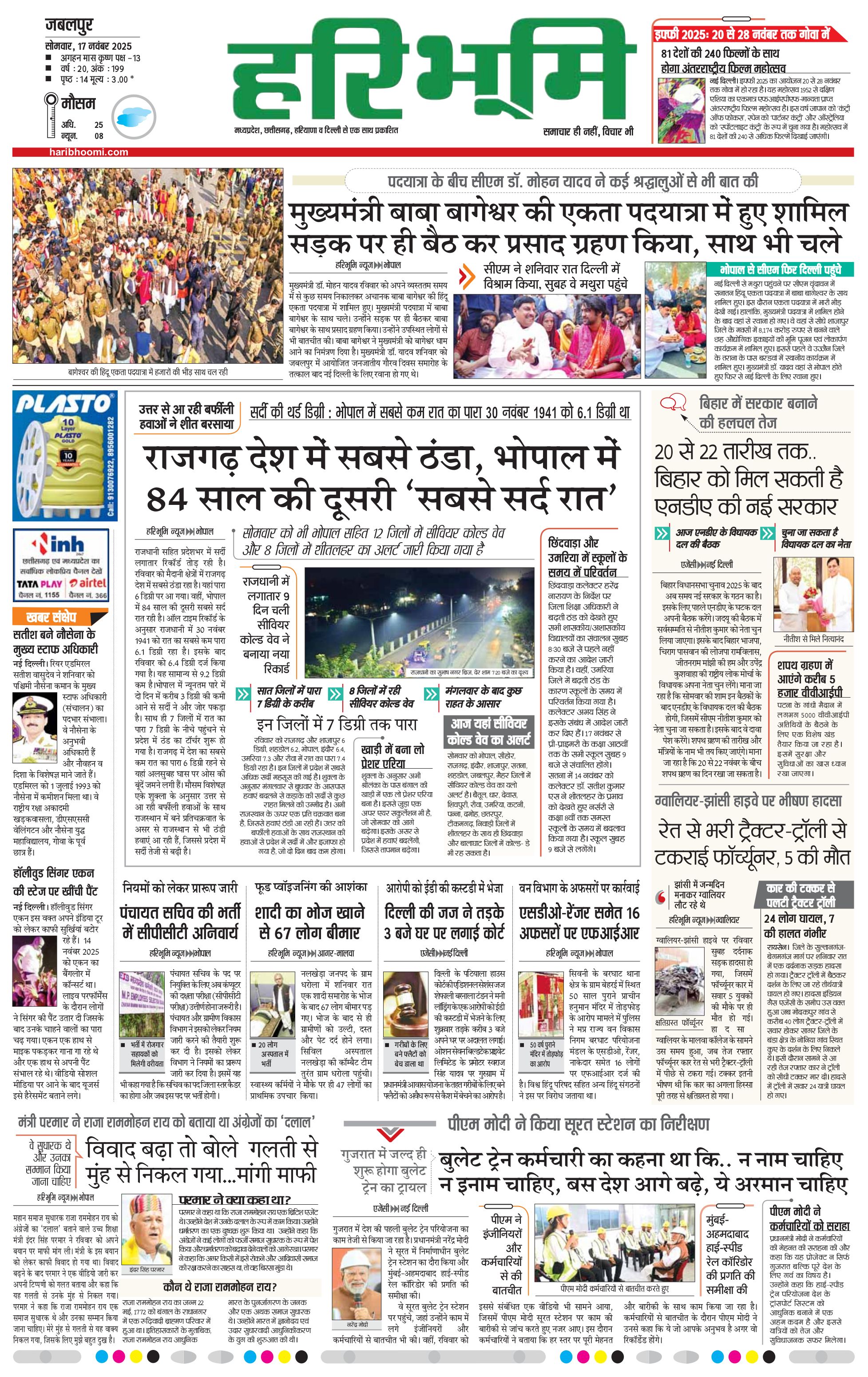 जबलपुर- मुख्य संस्करण - 17 Nov 2025 - - Page 1