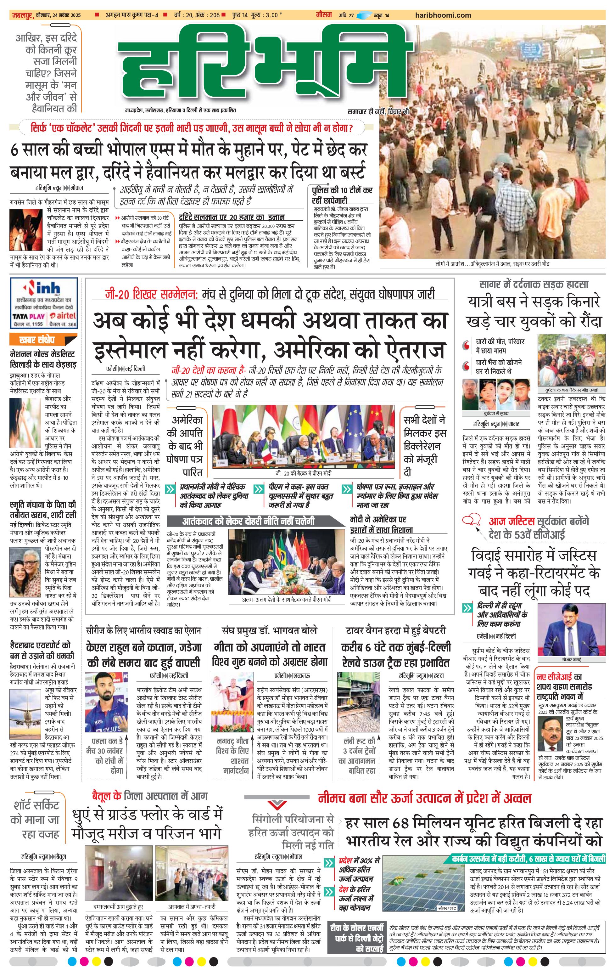 जबलपुर- मुख्य संस्करण - 24 Nov 2025 - - Page 1