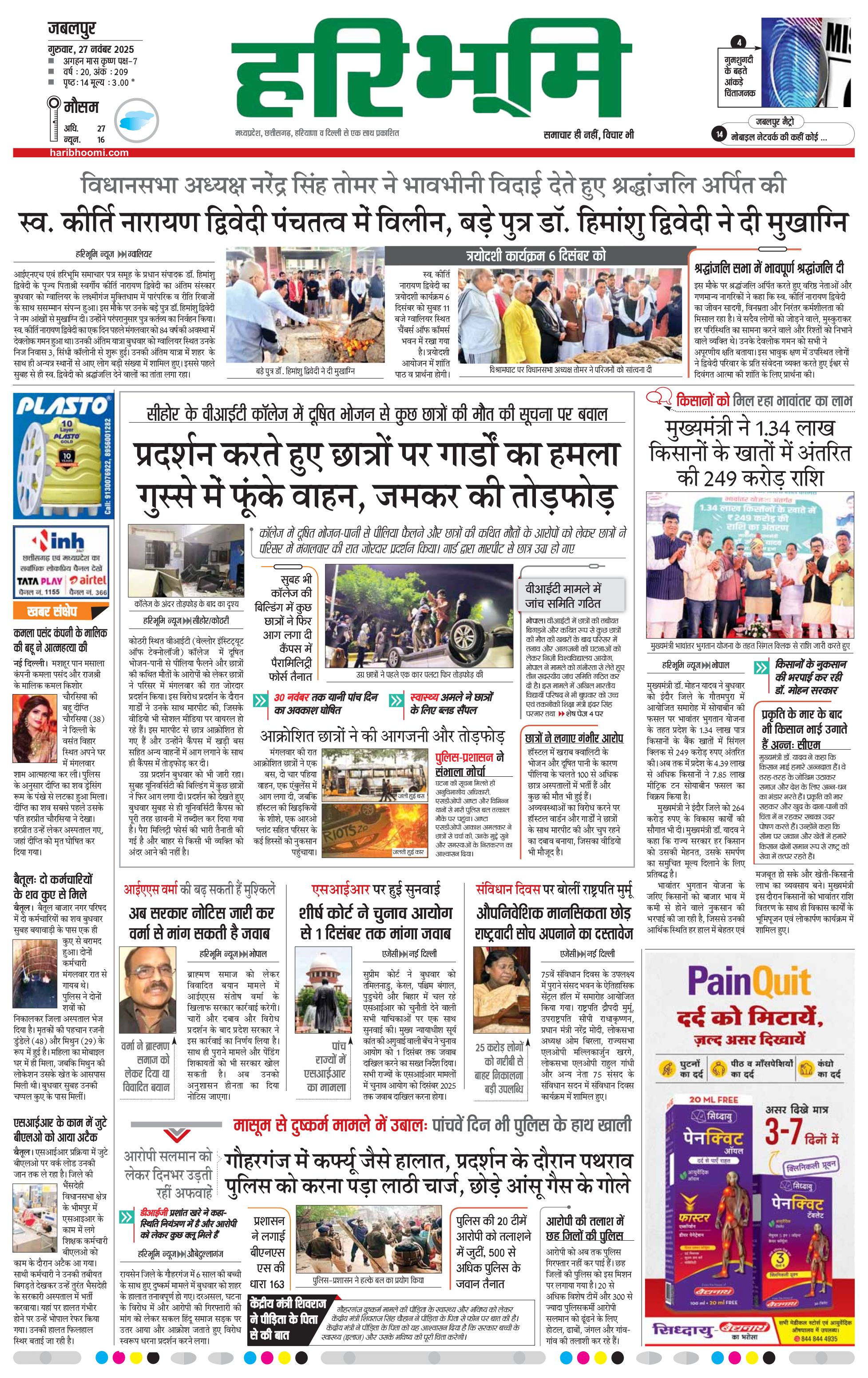 जबलपुर- मुख्य संस्करण - 27 Nov 2025 - - Page 1