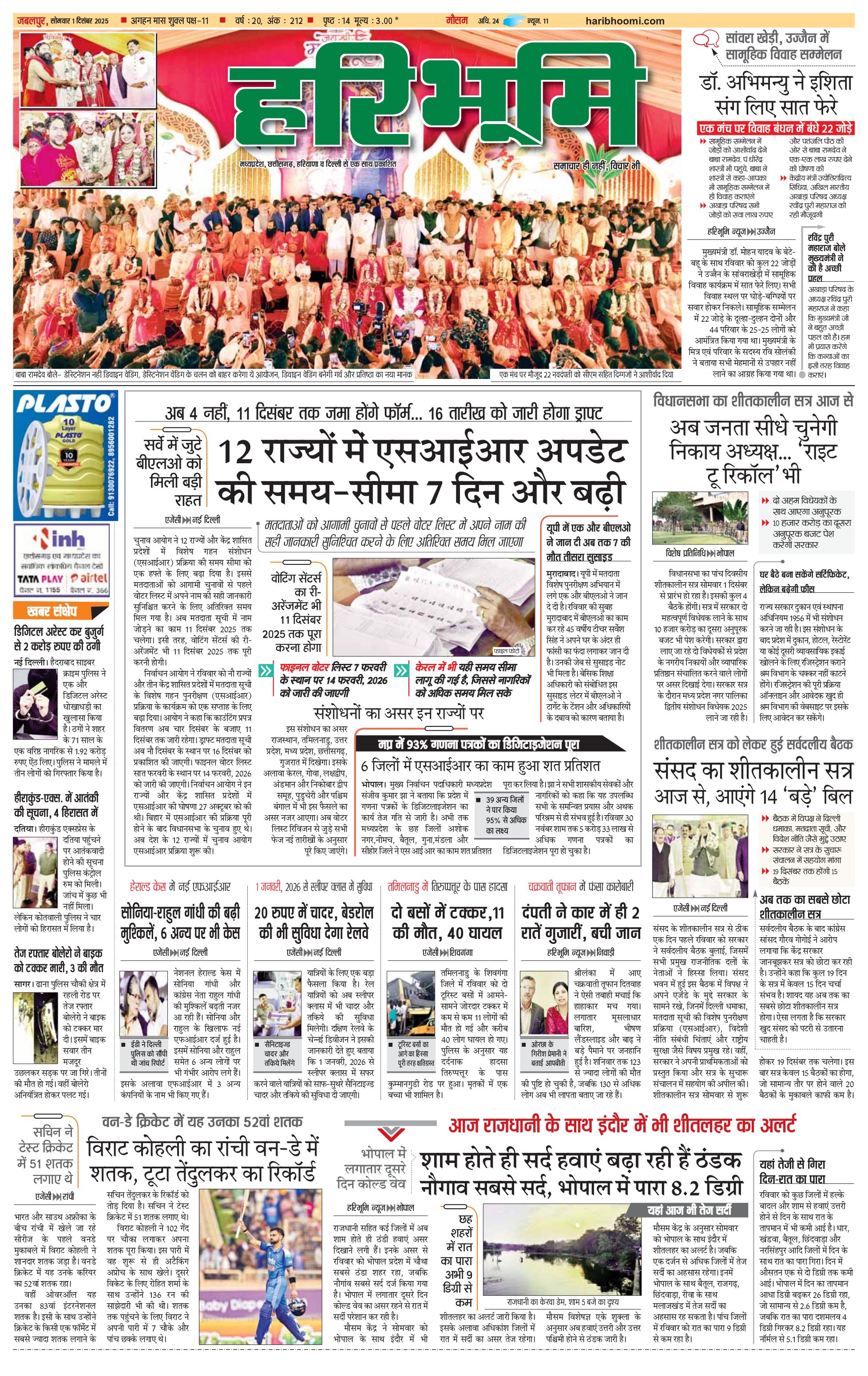 जबलपुर- मुख्य संस्करण - 01 Dec 2025 - - Page 1