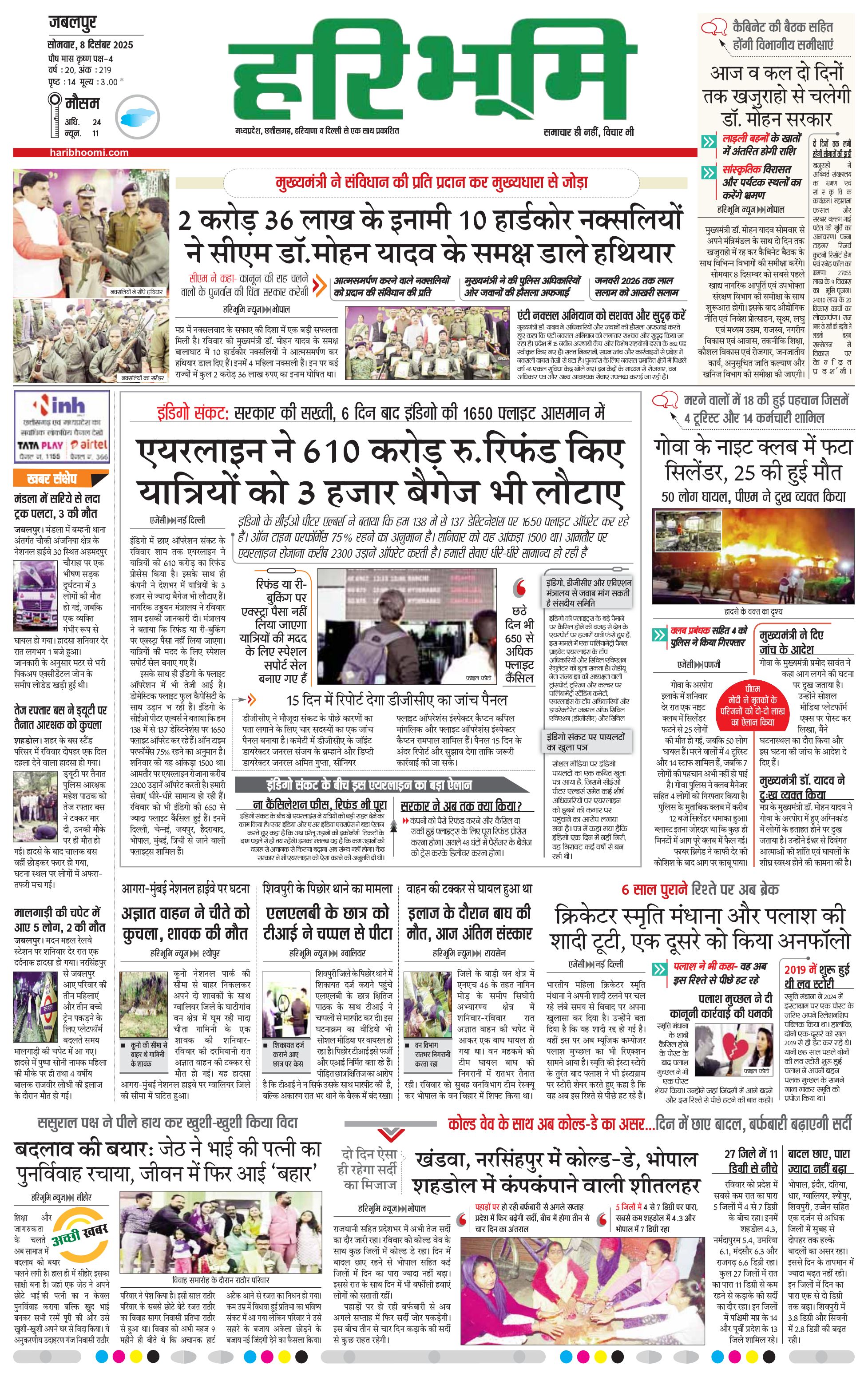 जबलपुर- मुख्य संस्करण - 08 Dec 2025 - - Page 1