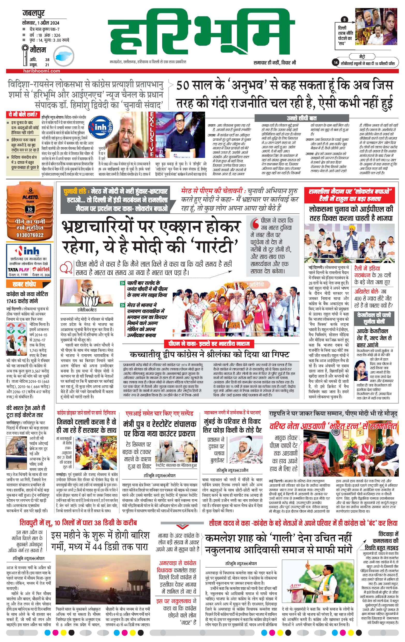 जबलपुर- मुख्य संस्करण - 01 Apr 2024 - - Page 1