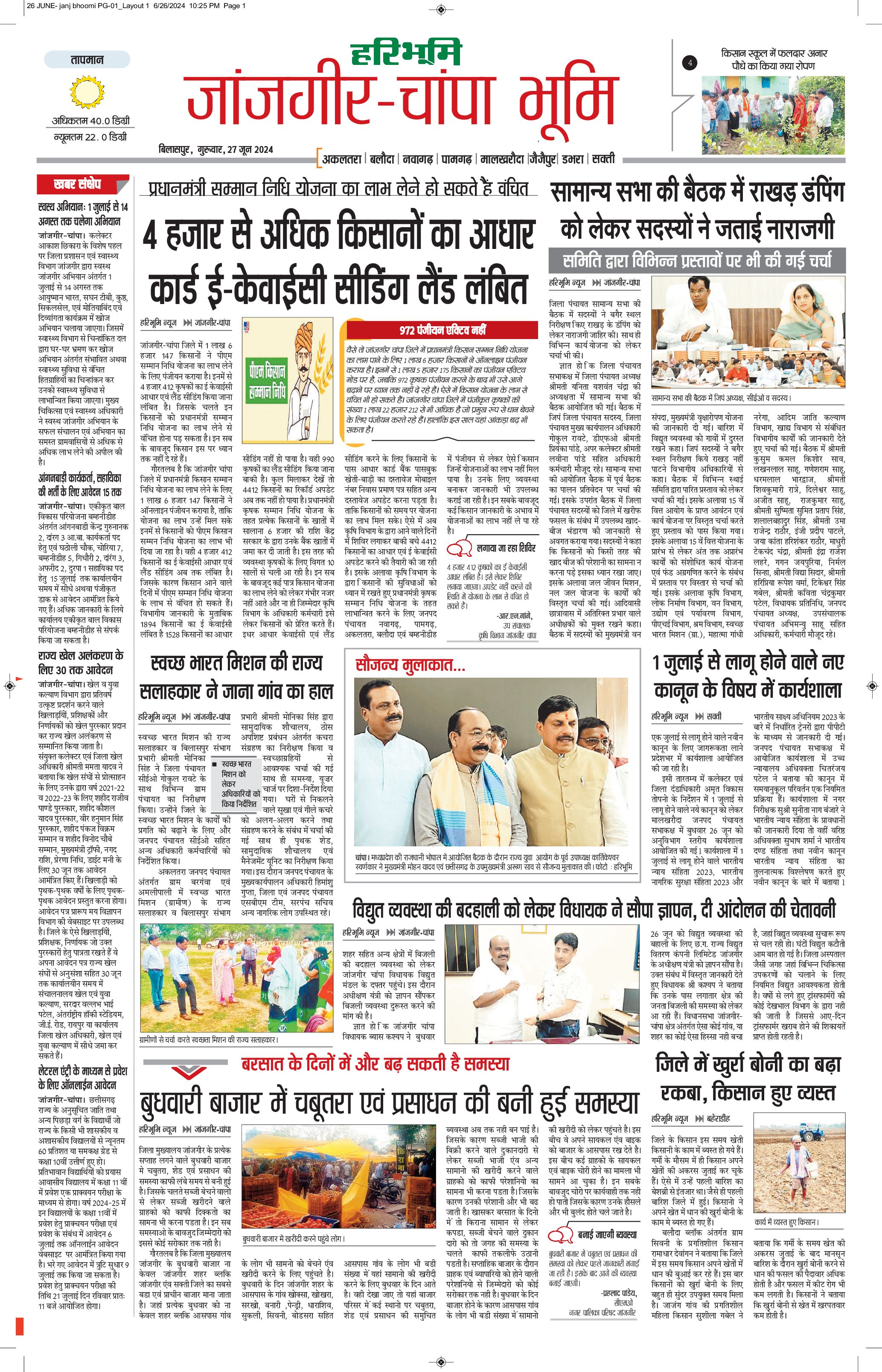 जांजगीर-चांपा भूमि - 27 Jun 2024 - - Page 1