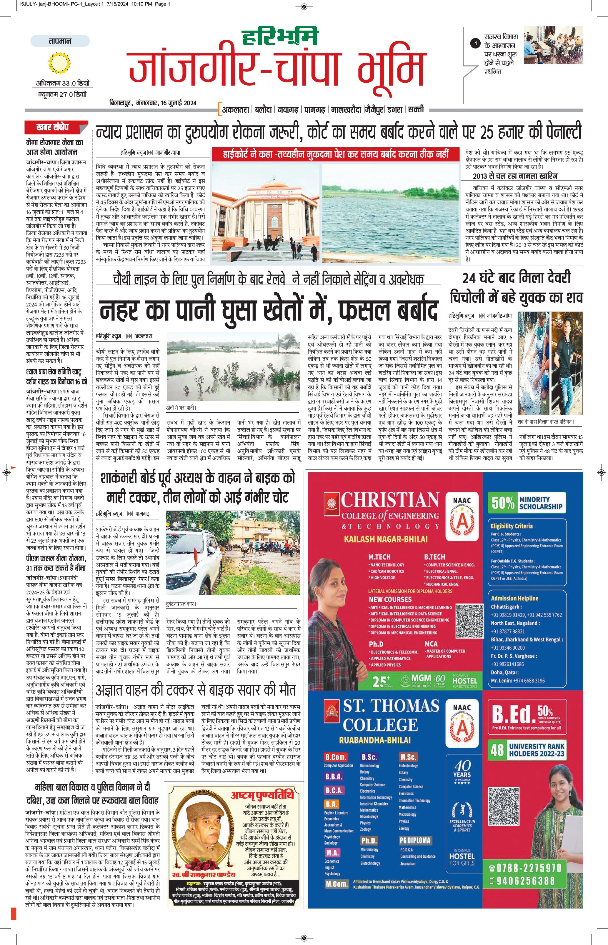जांजगीर-चांपा भूमि - 16 Jul 2024 - - Page 1