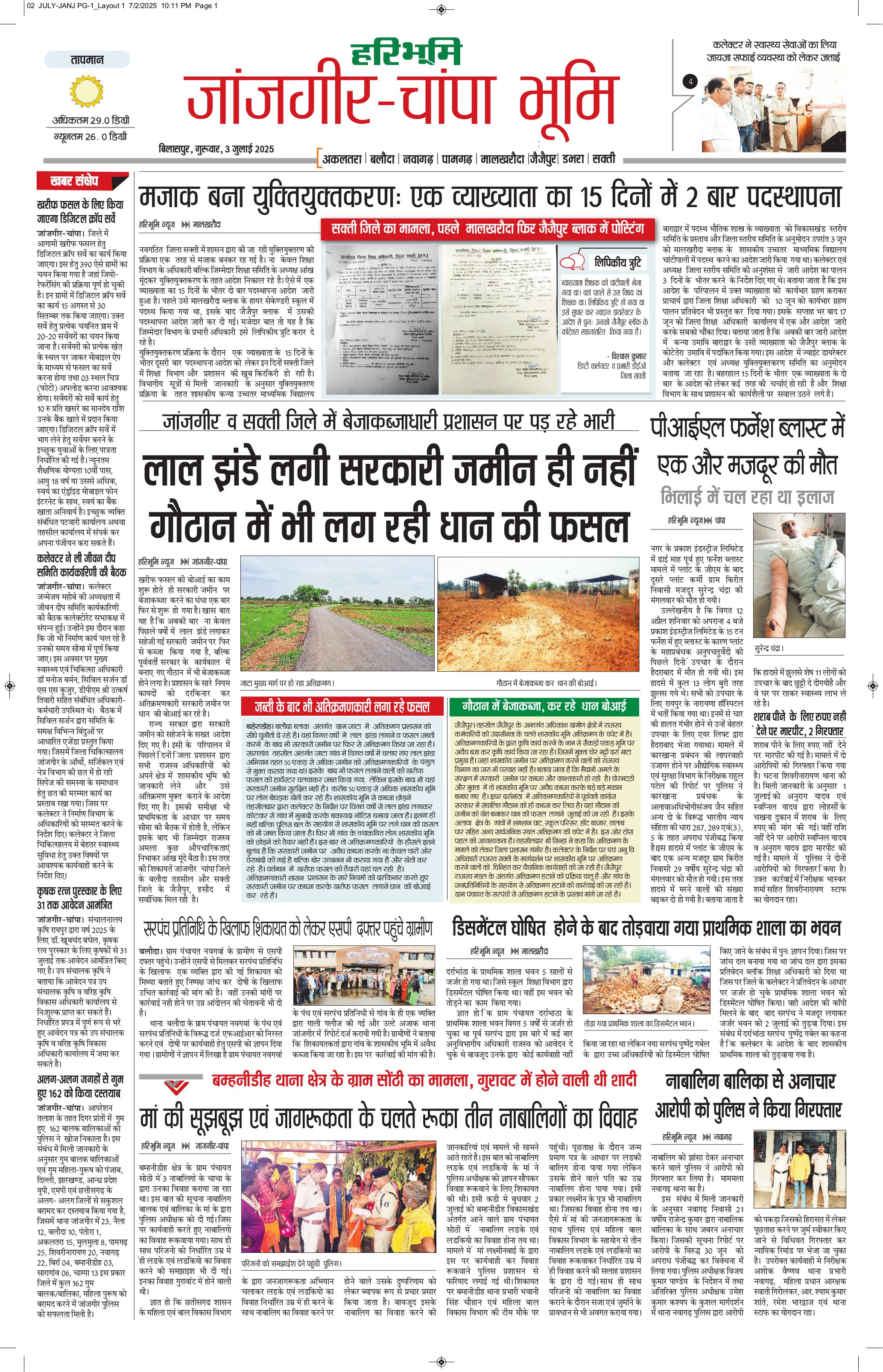 जांजगीर-चांपा भूमि - 03 Jul 2025 - - Page 1
