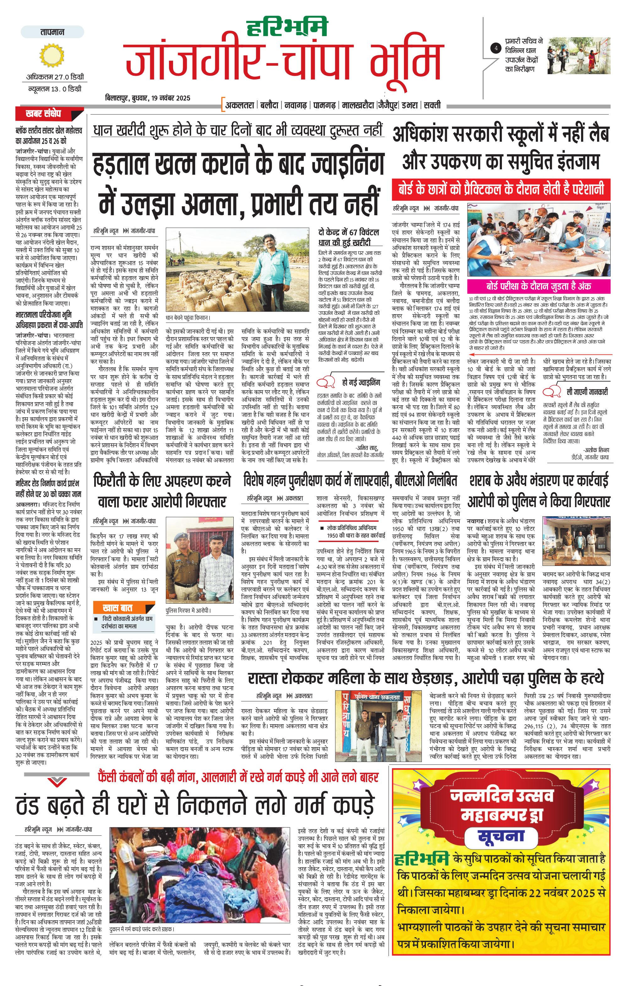 जांजगीर-चांपा भूमि - 19 Nov 2025 - - Page 1