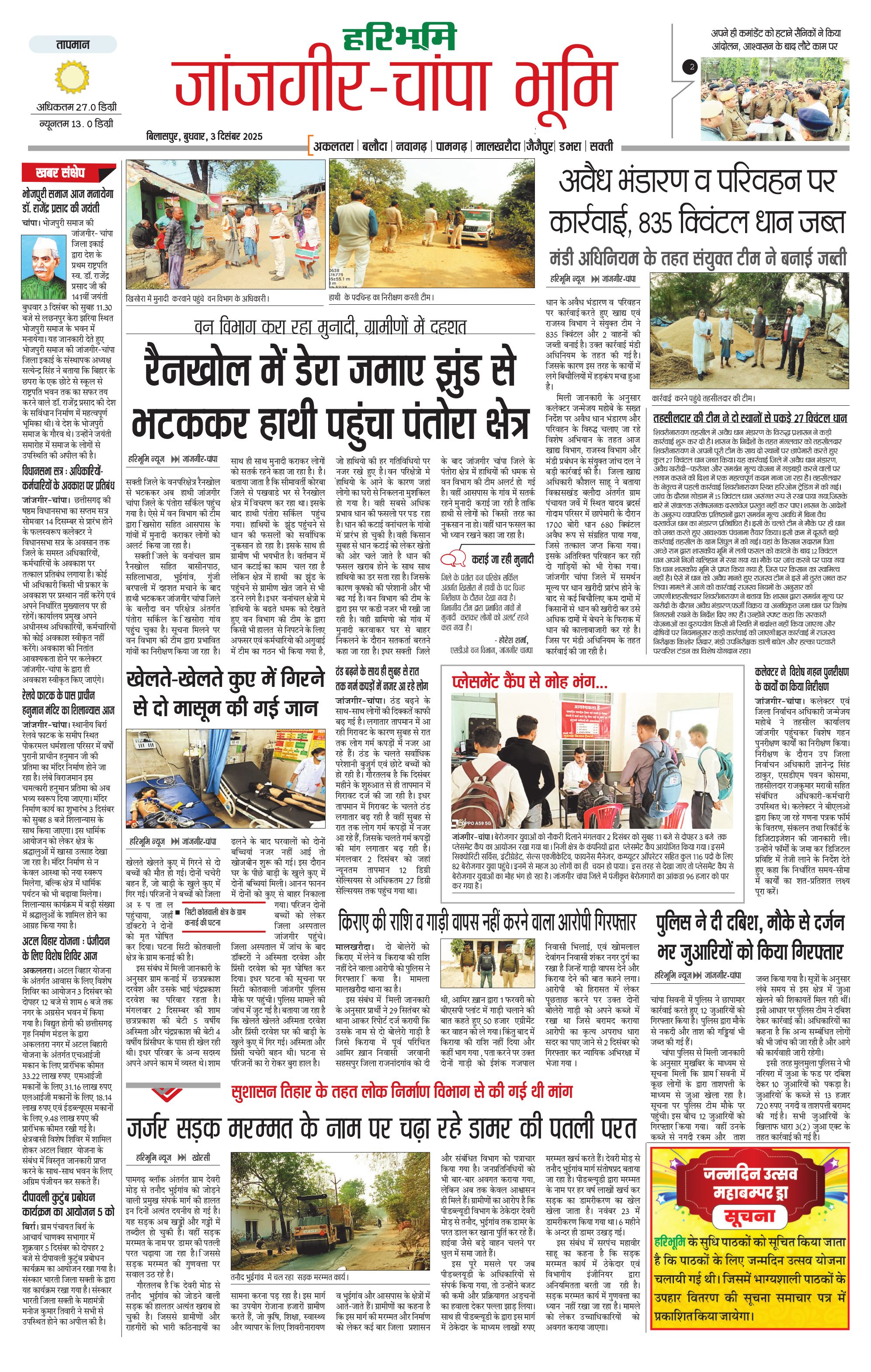जांजगीर-चांपा भूमि - 03 Dec 2025 - - Page 1