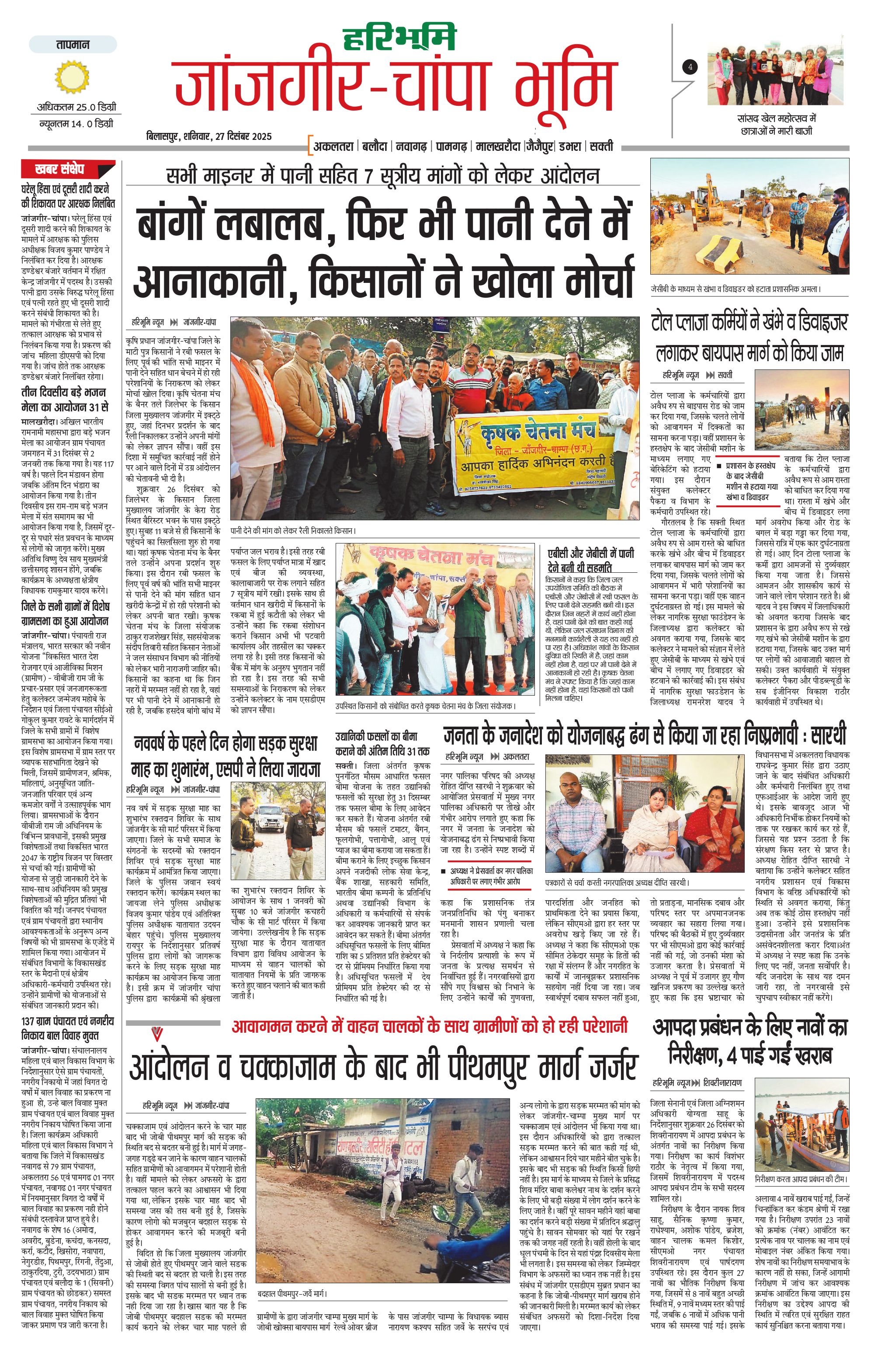 जांजगीर-चांपा भूमि - 27 Dec 2025 - - Page 1