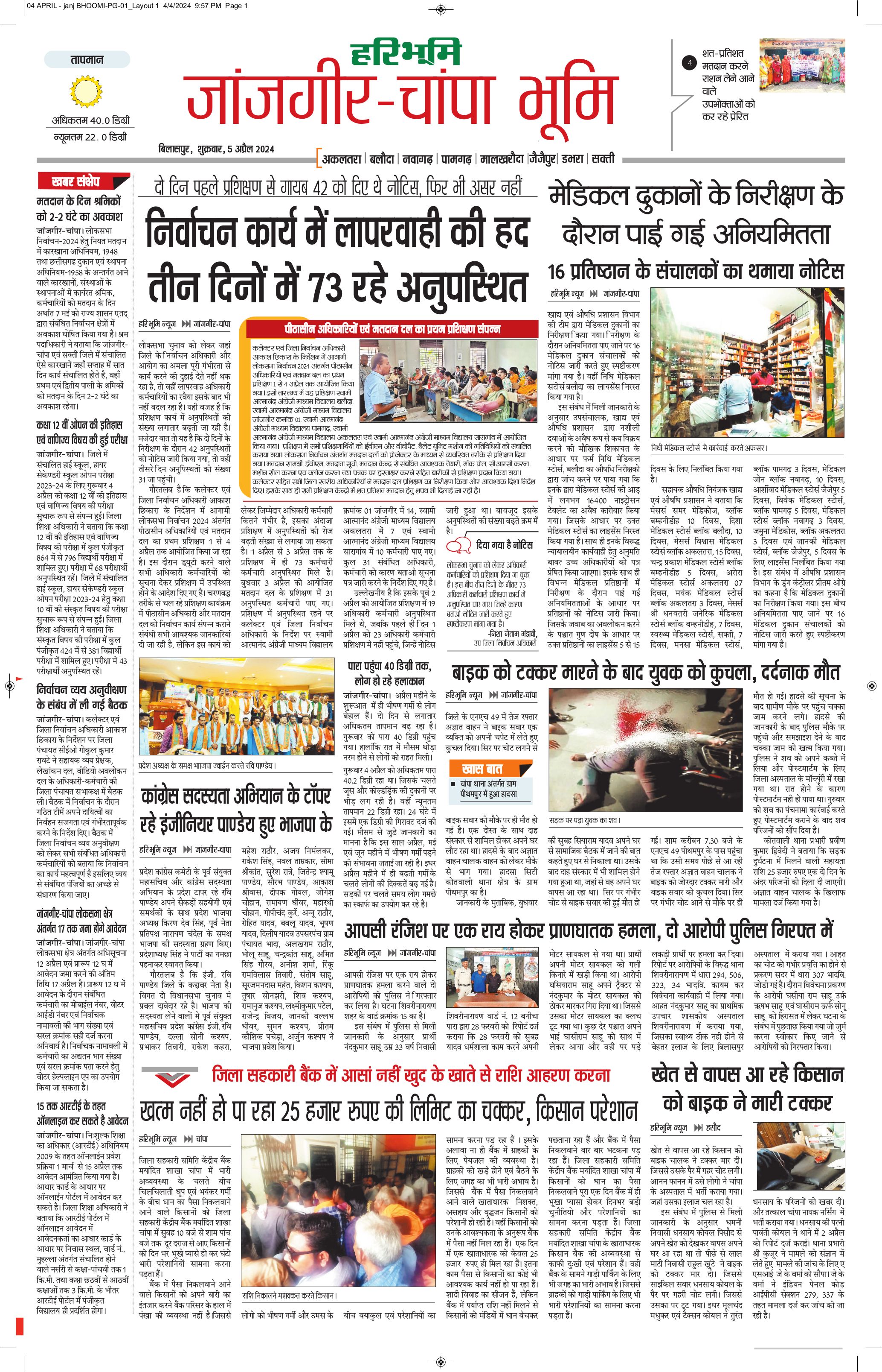 जांजगीर-चांपा भूमि - 05 Apr 2024 - - Page 1