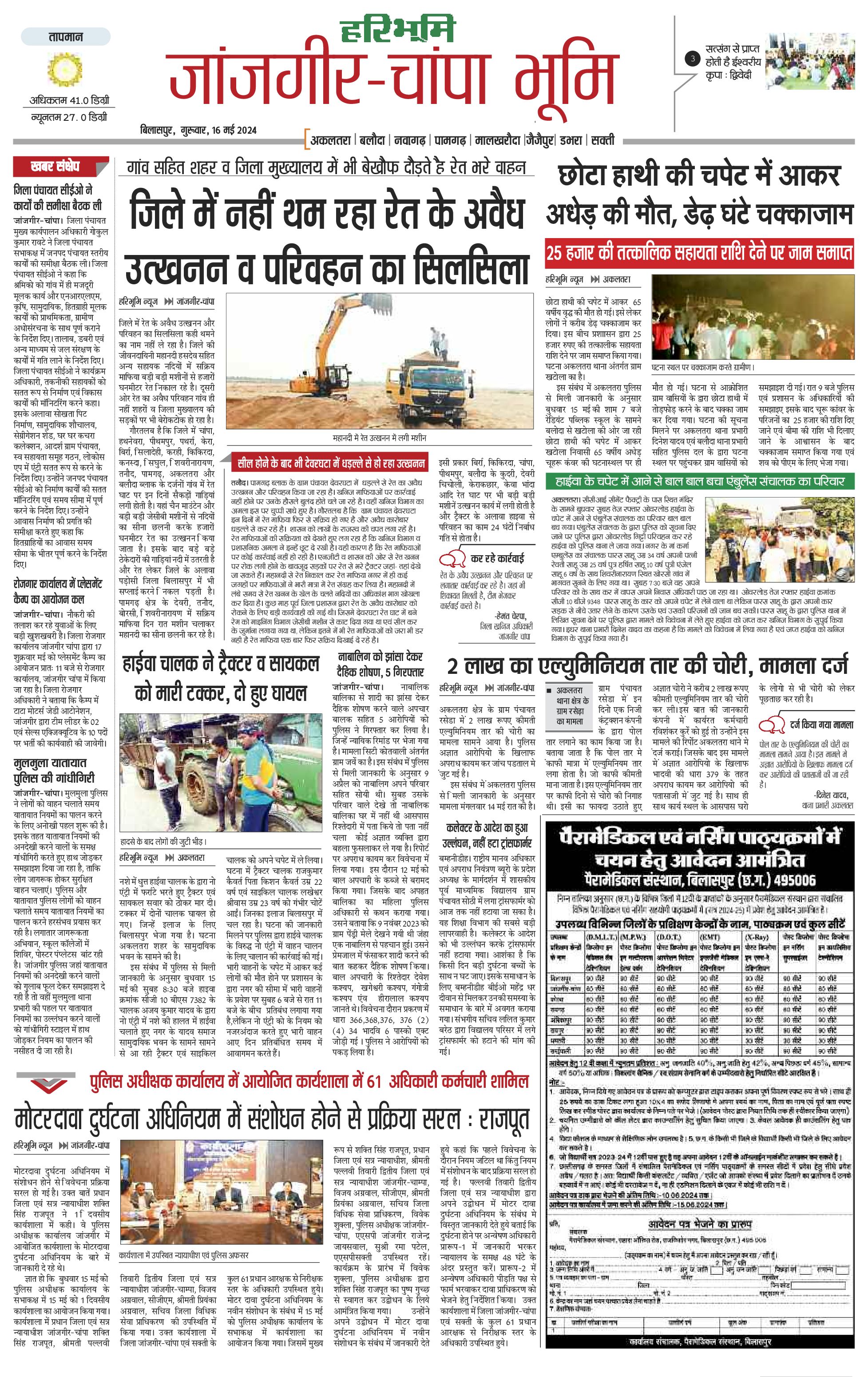 जांजगीर-चांपा भूमि - 16 May 2024 - - Page 1