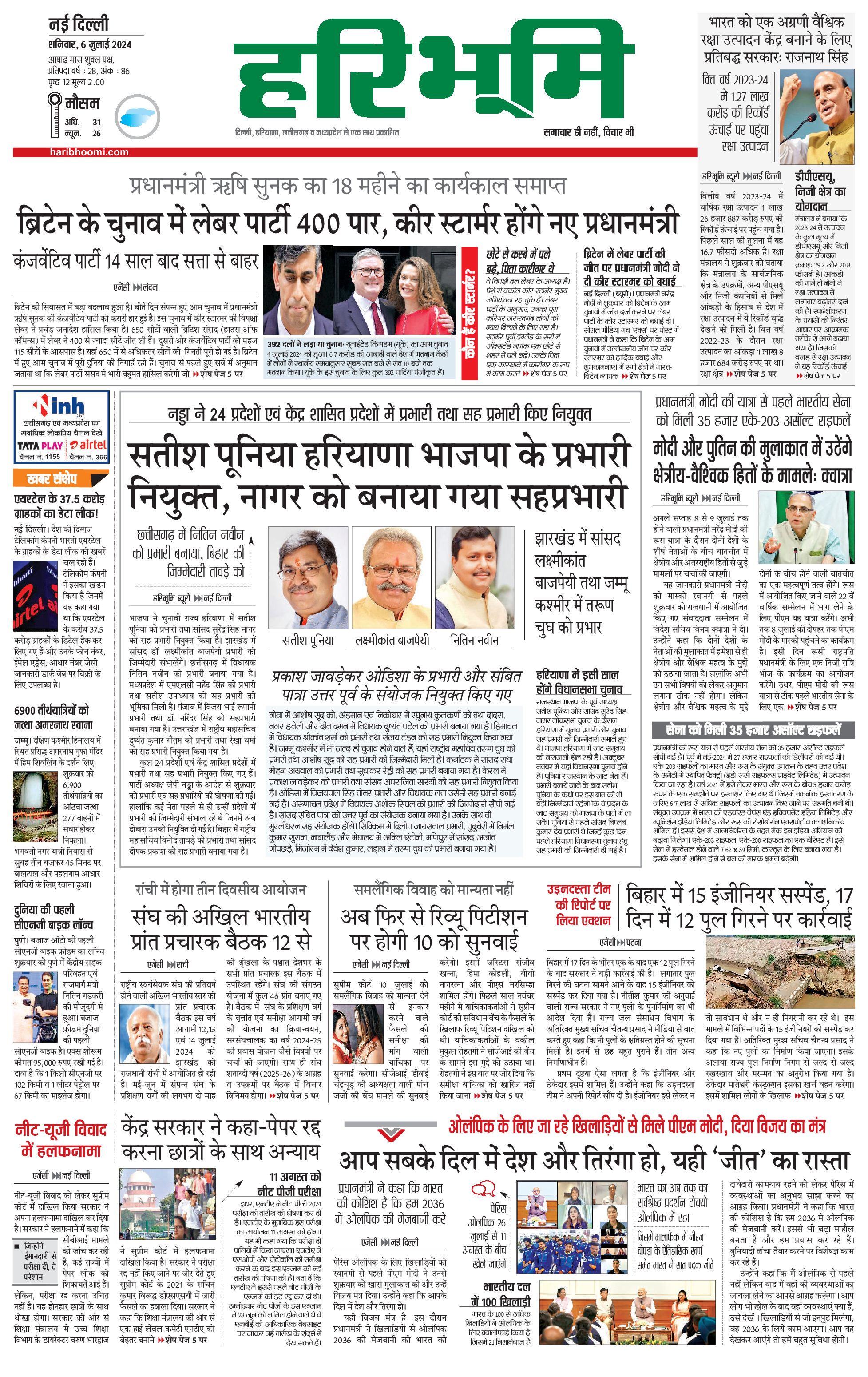 दिल्ली मुख्य संस्करण - 06 Jul 2024 - - Page 1