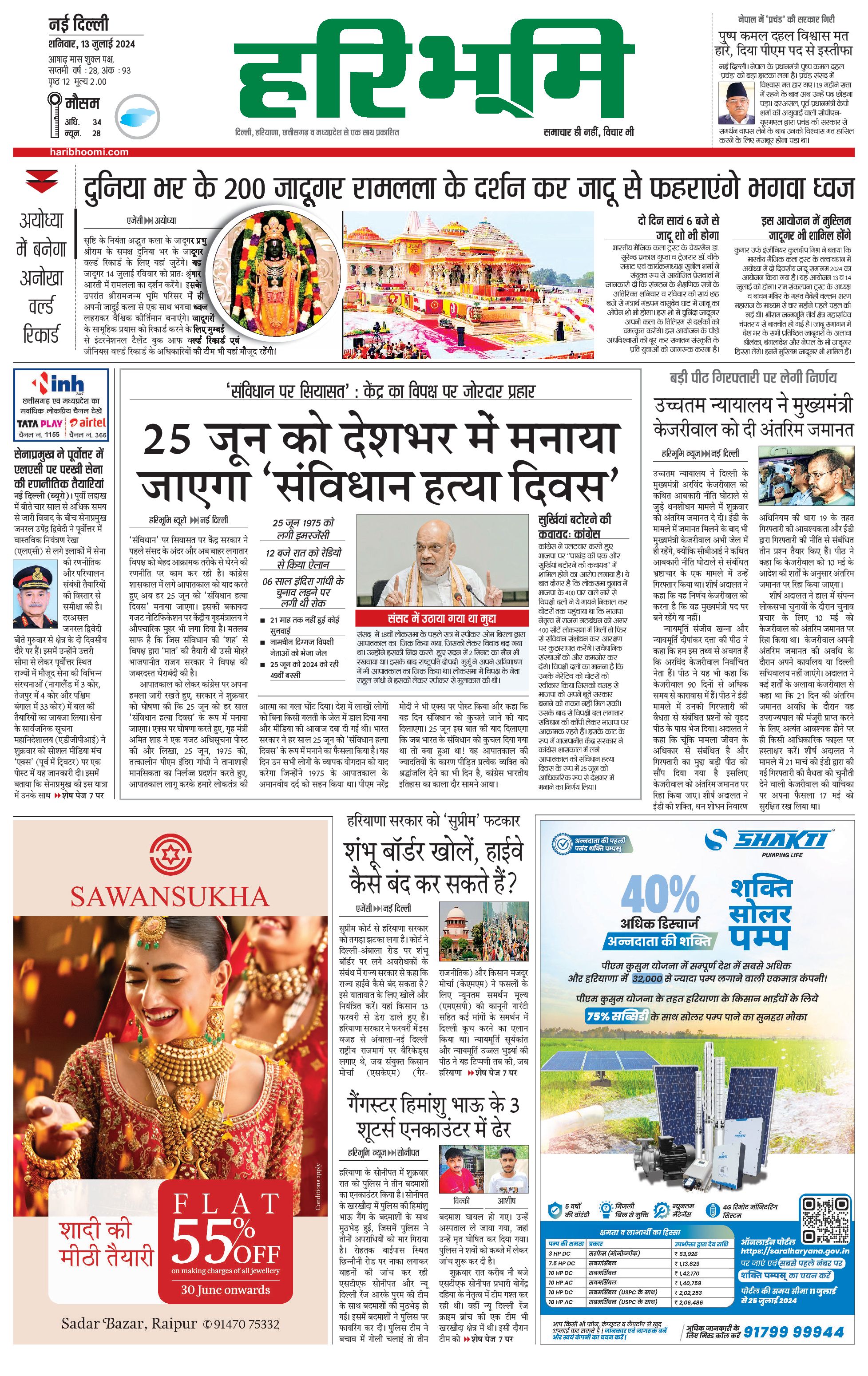 दिल्ली मुख्य संस्करण - 13 Jul 2024 - - Page 1