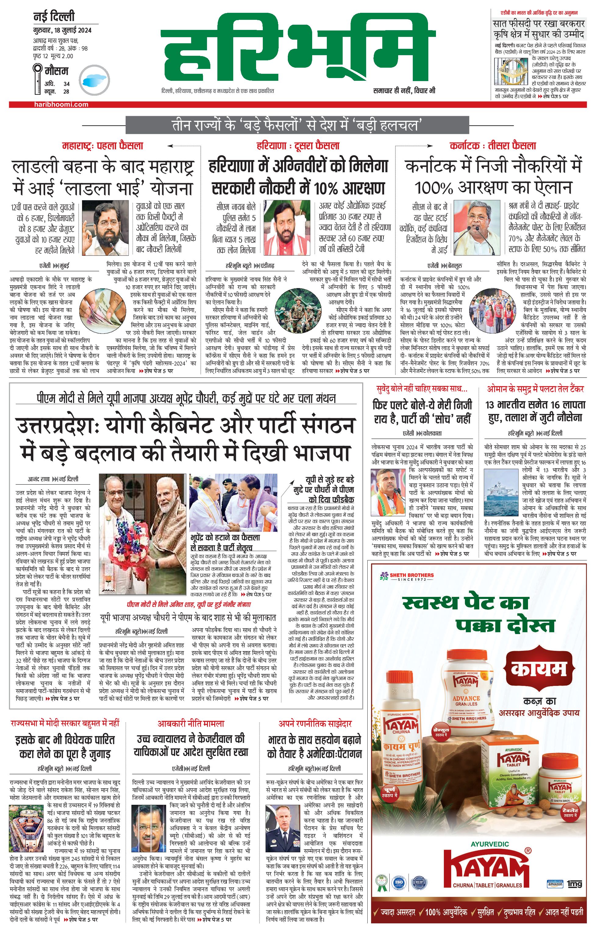 दिल्ली मुख्य संस्करण - 18 Jul 2024 - - Page 1