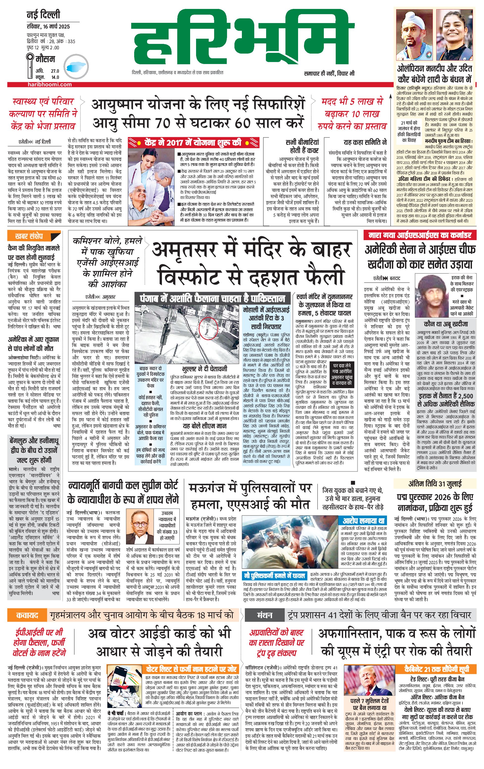 दिल्ली मुख्य संस्करण - 16 Mar 2025 - - Page 1