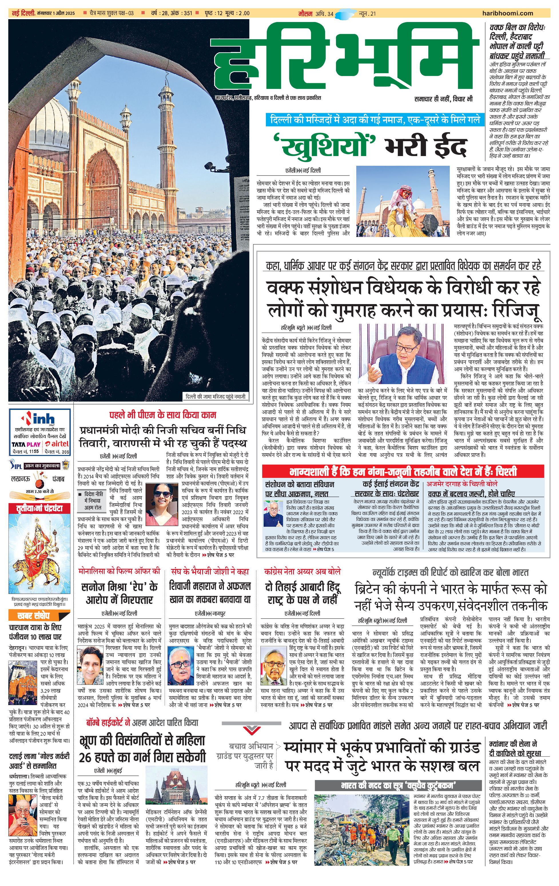 दिल्ली मुख्य संस्करण - 01 Apr 2025 - - Page 1