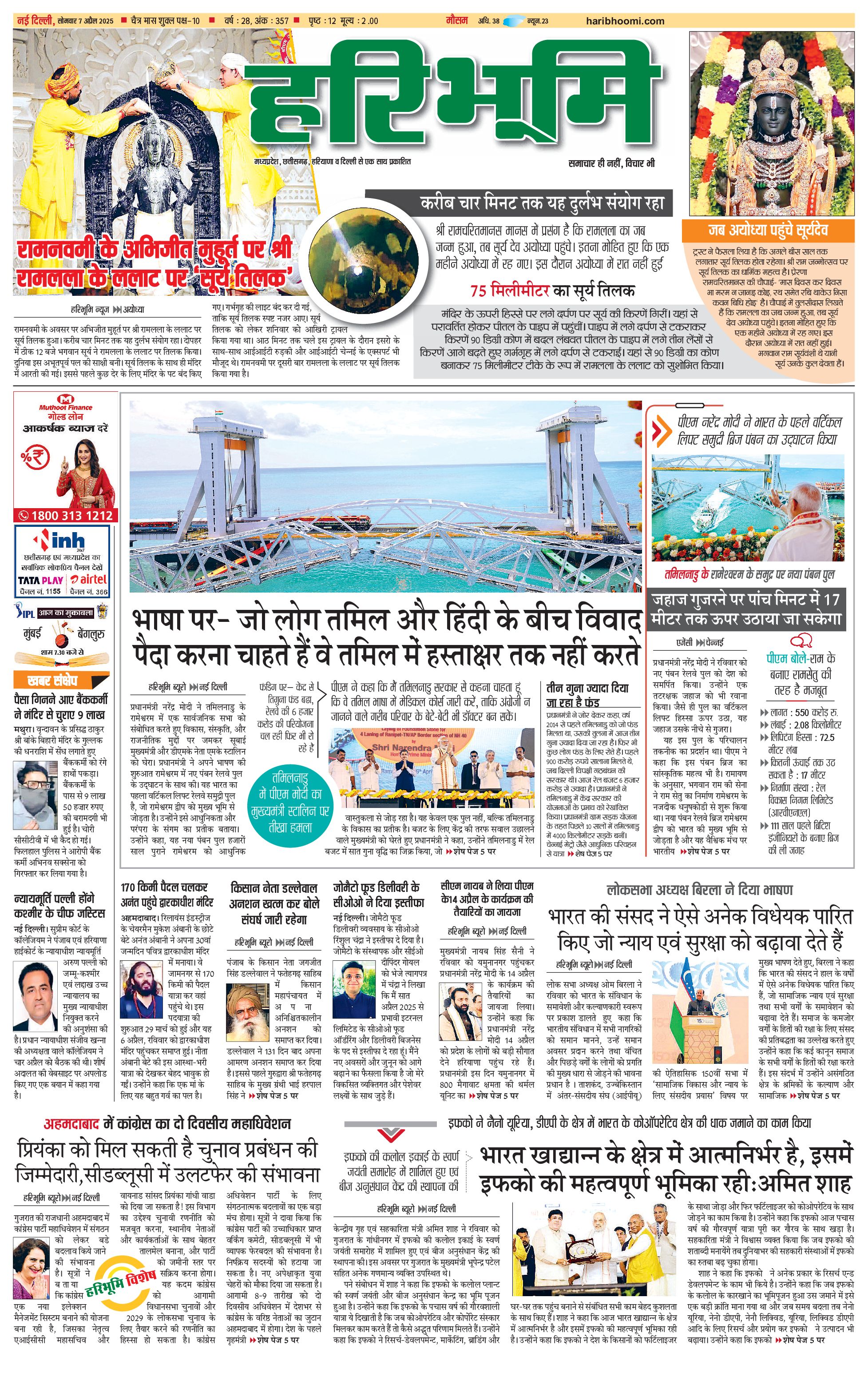 दिल्ली मुख्य संस्करण - 07 Apr 2025 - - Page 1