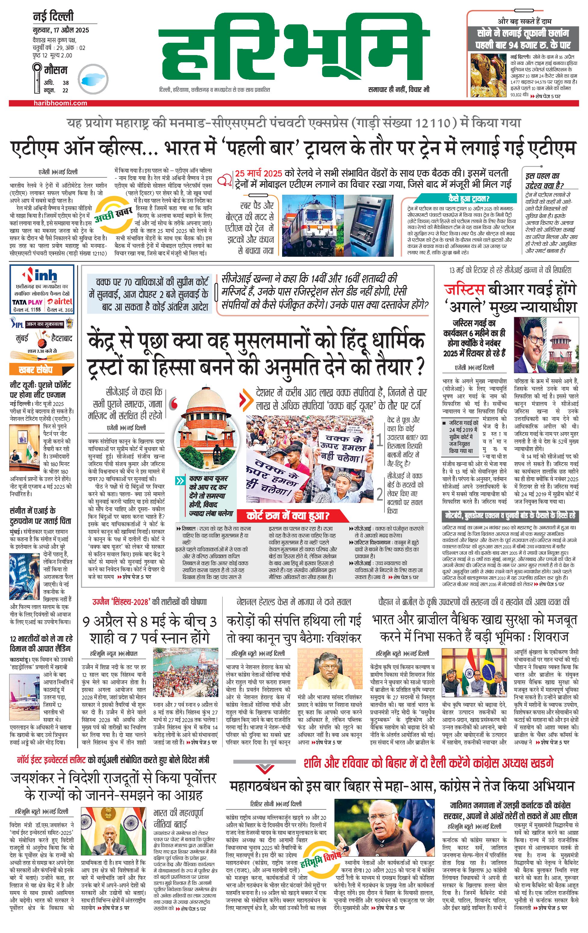 दिल्ली मुख्य संस्करण - 17 Apr 2025 - - Page 1