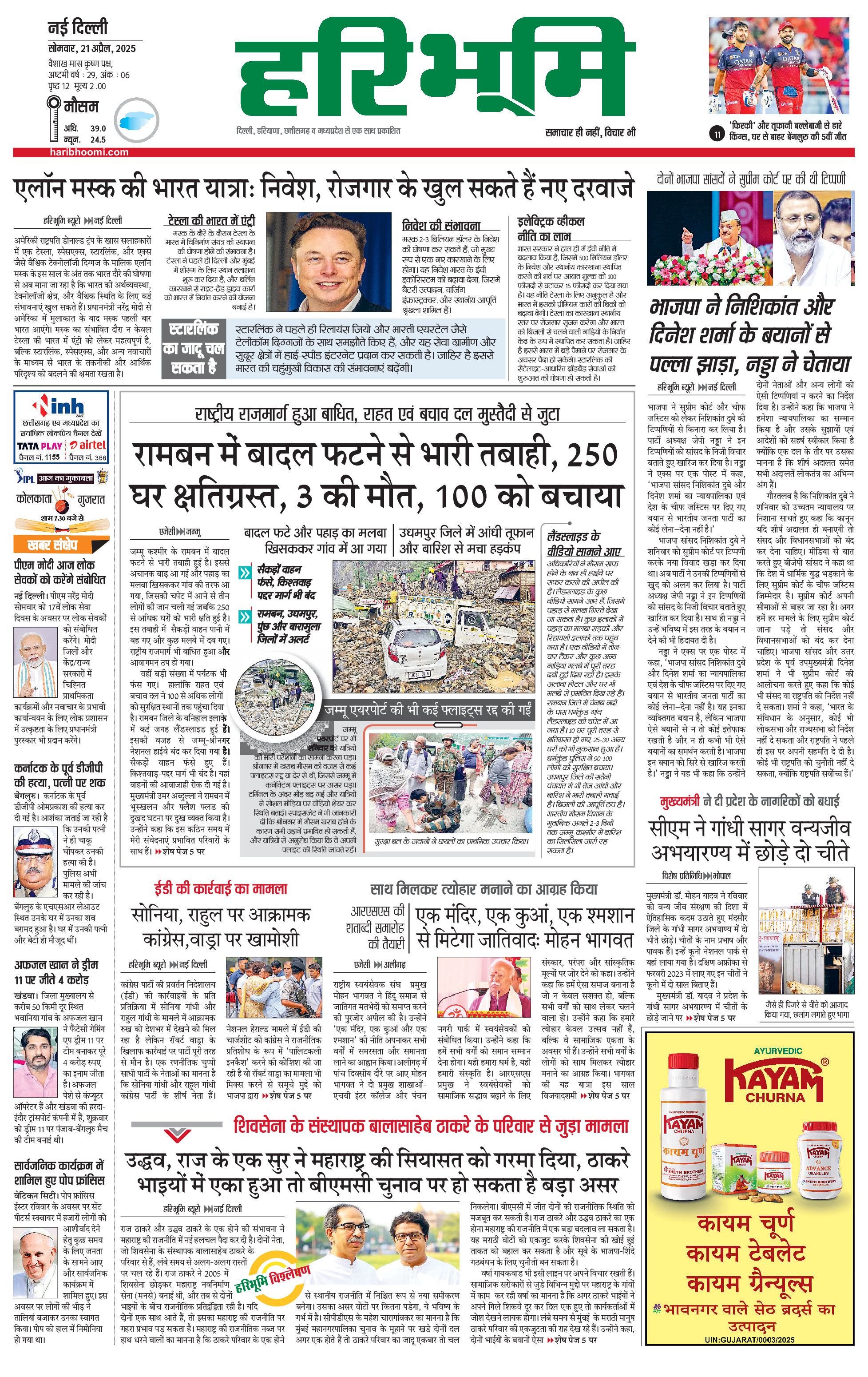 दिल्ली मुख्य संस्करण - 21 Apr 2025 - - Page 1