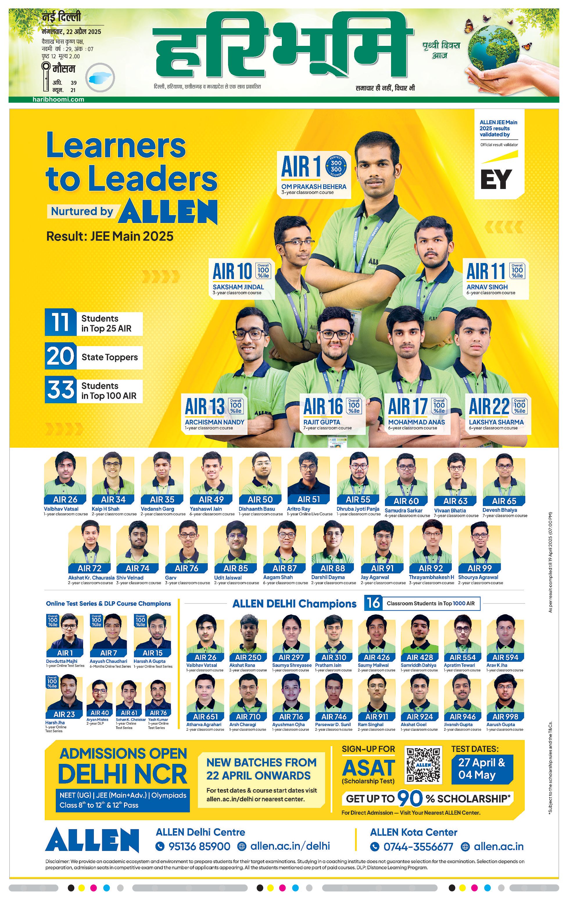 दिल्ली मुख्य संस्करण - 22 Apr 2025 - - Page 1