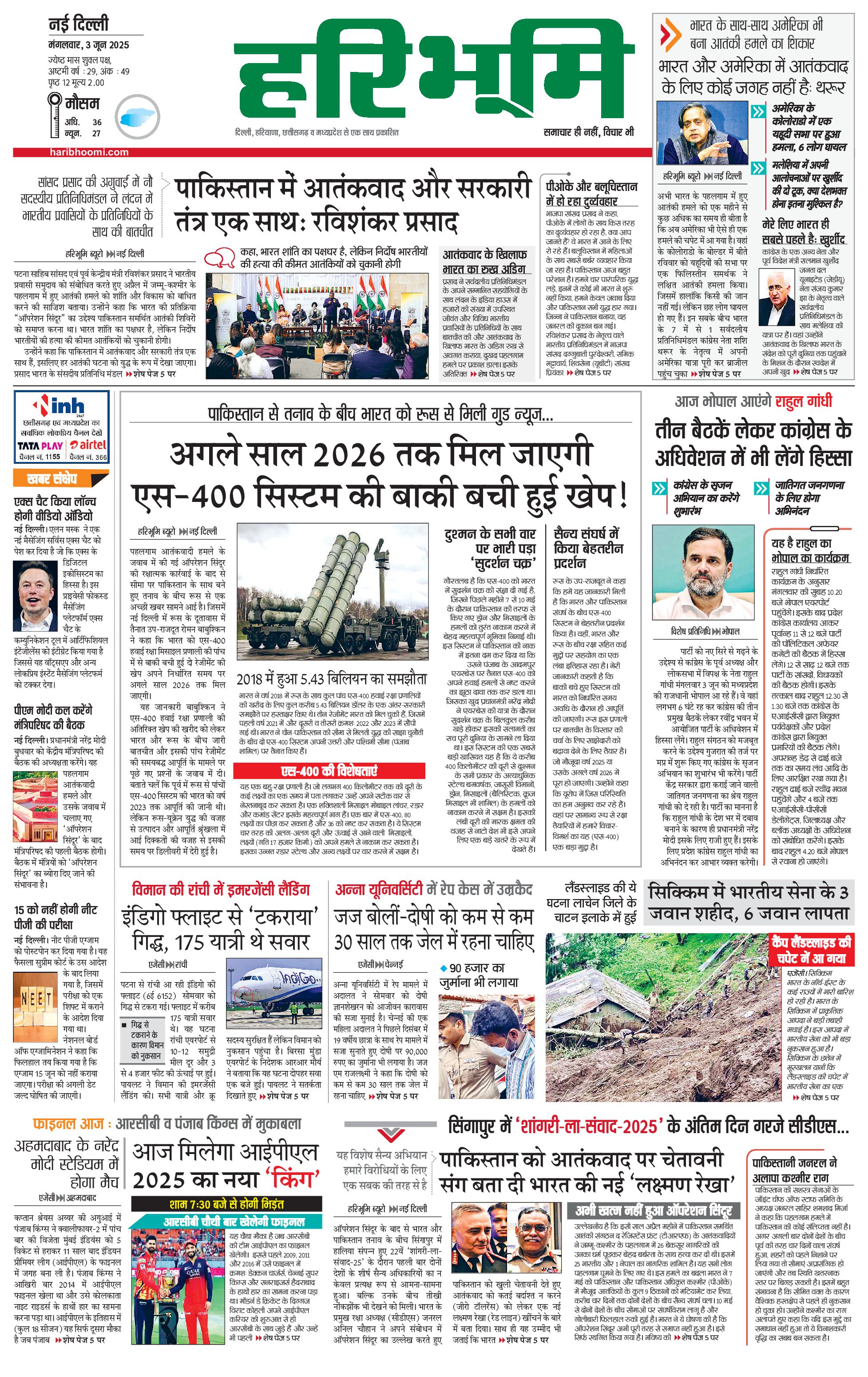दिल्ली मुख्य संस्करण - 03 Jun 2025 - - Page 1