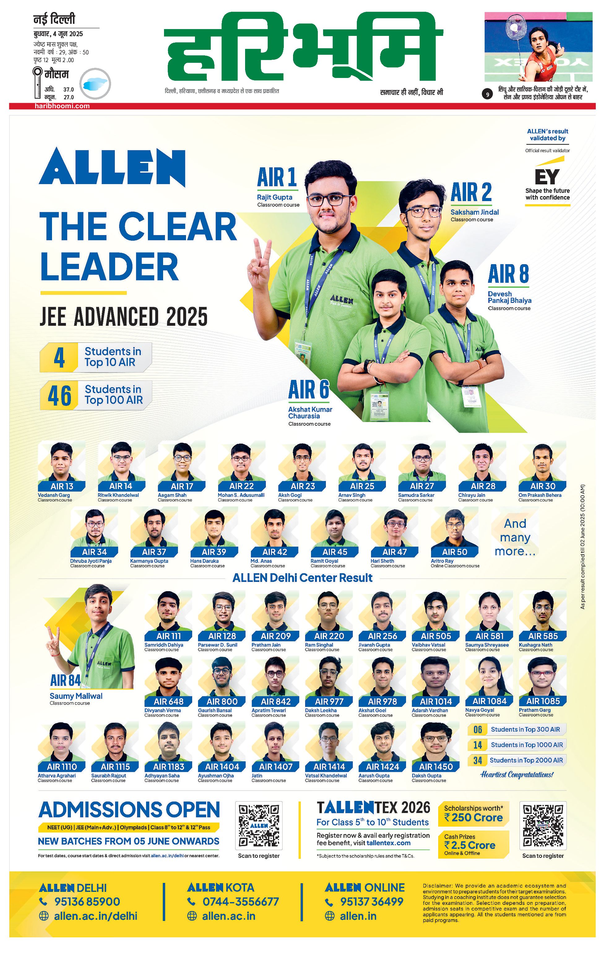 दिल्ली मुख्य संस्करण - 04 Jun 2025 - - Page 1