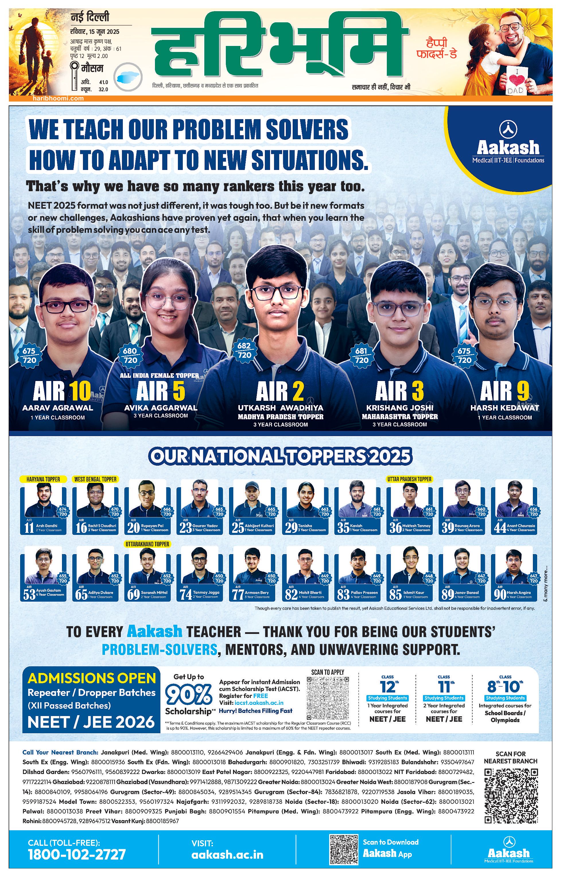 दिल्ली मुख्य संस्करण - 15 Jun 2025 - - Page 1