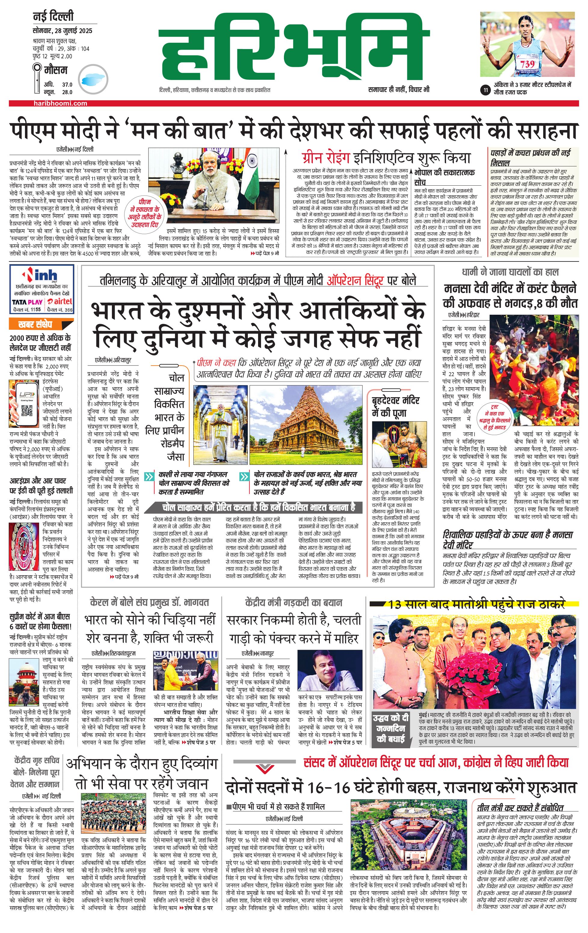 दिल्ली मुख्य संस्करण - 28 Jul 2025 - - Page 1