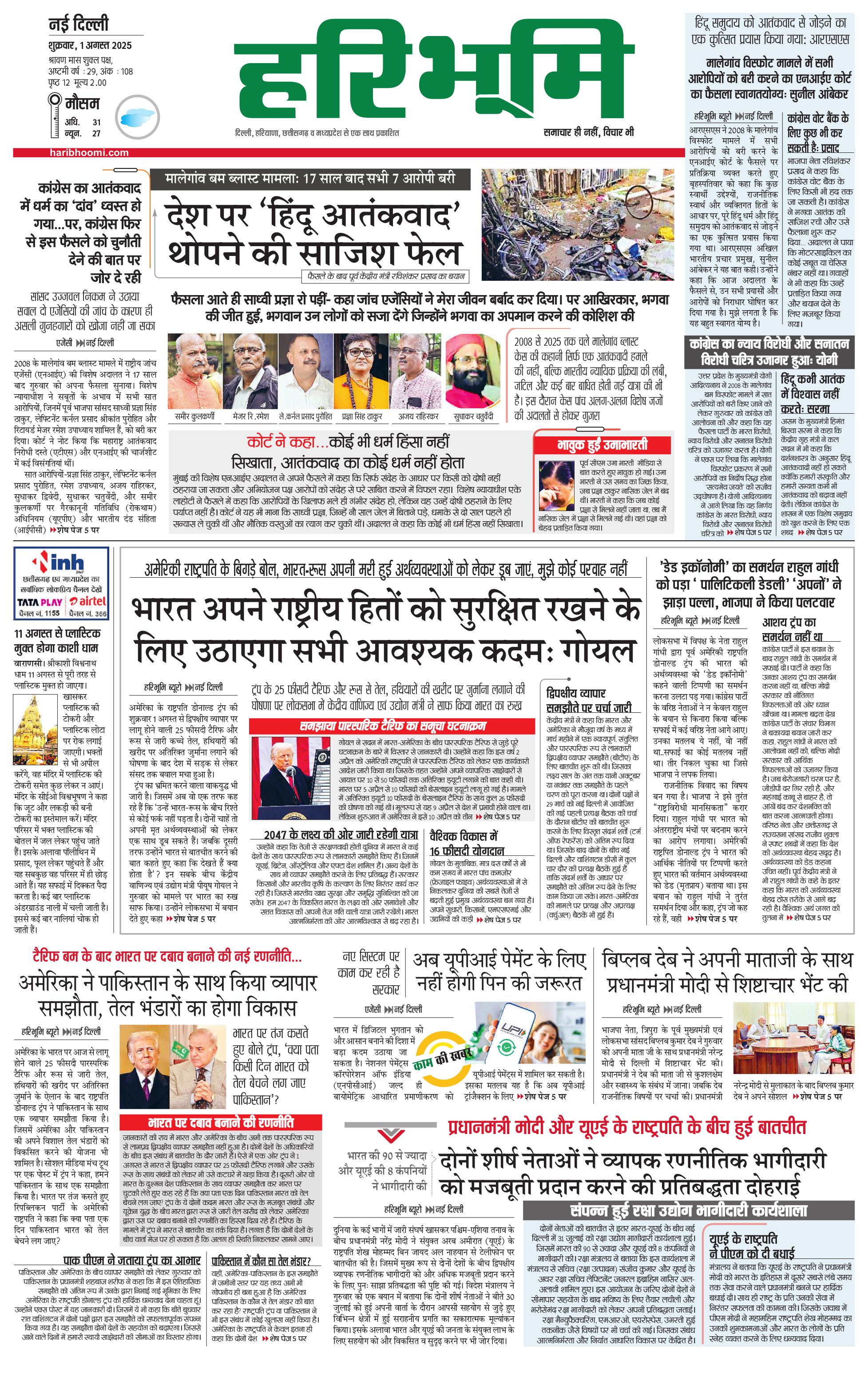दिल्ली मुख्य संस्करण - 01 Aug 2025 - - Page 1