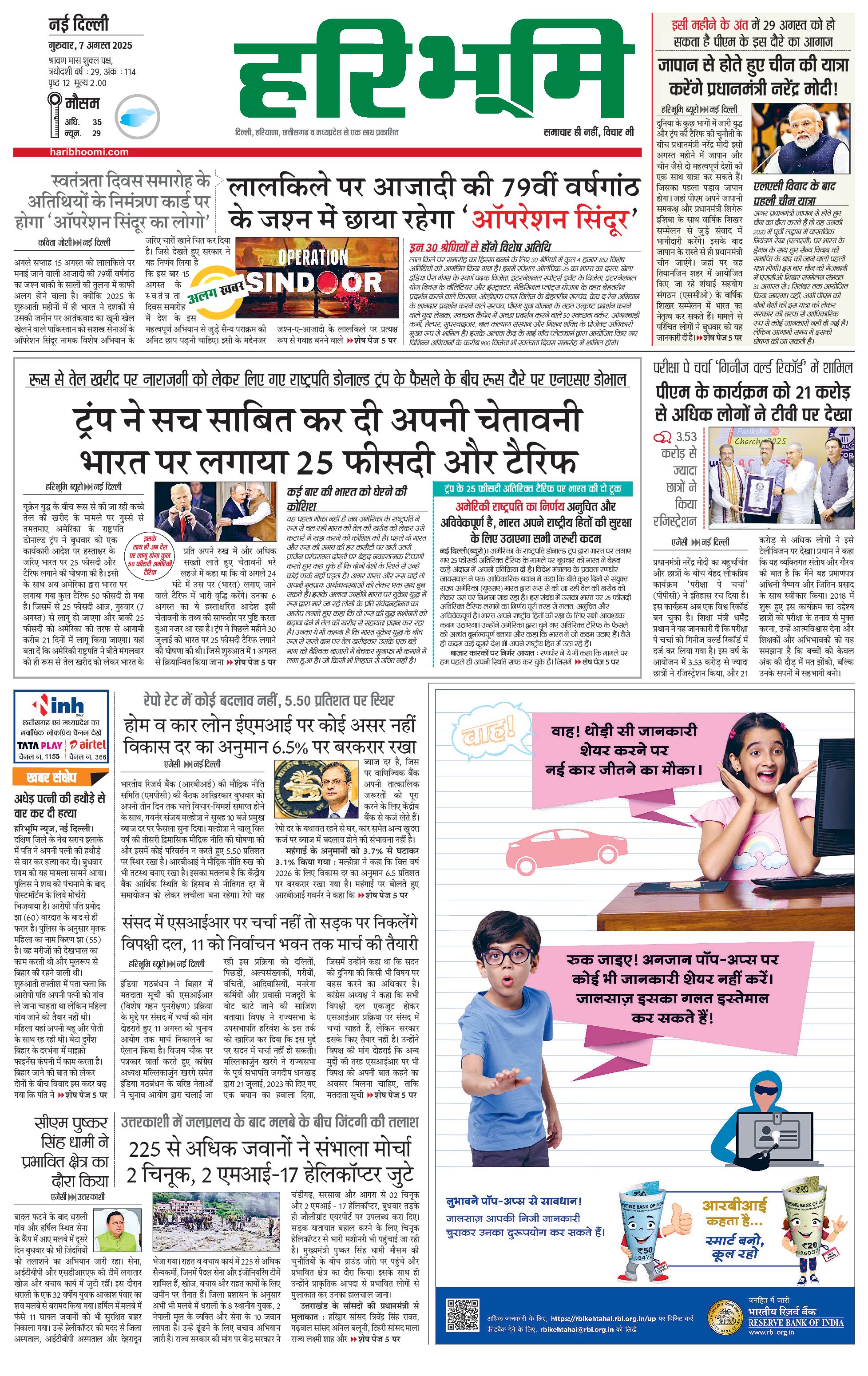 दिल्ली मुख्य संस्करण - 07 Aug 2025 - - Page 1