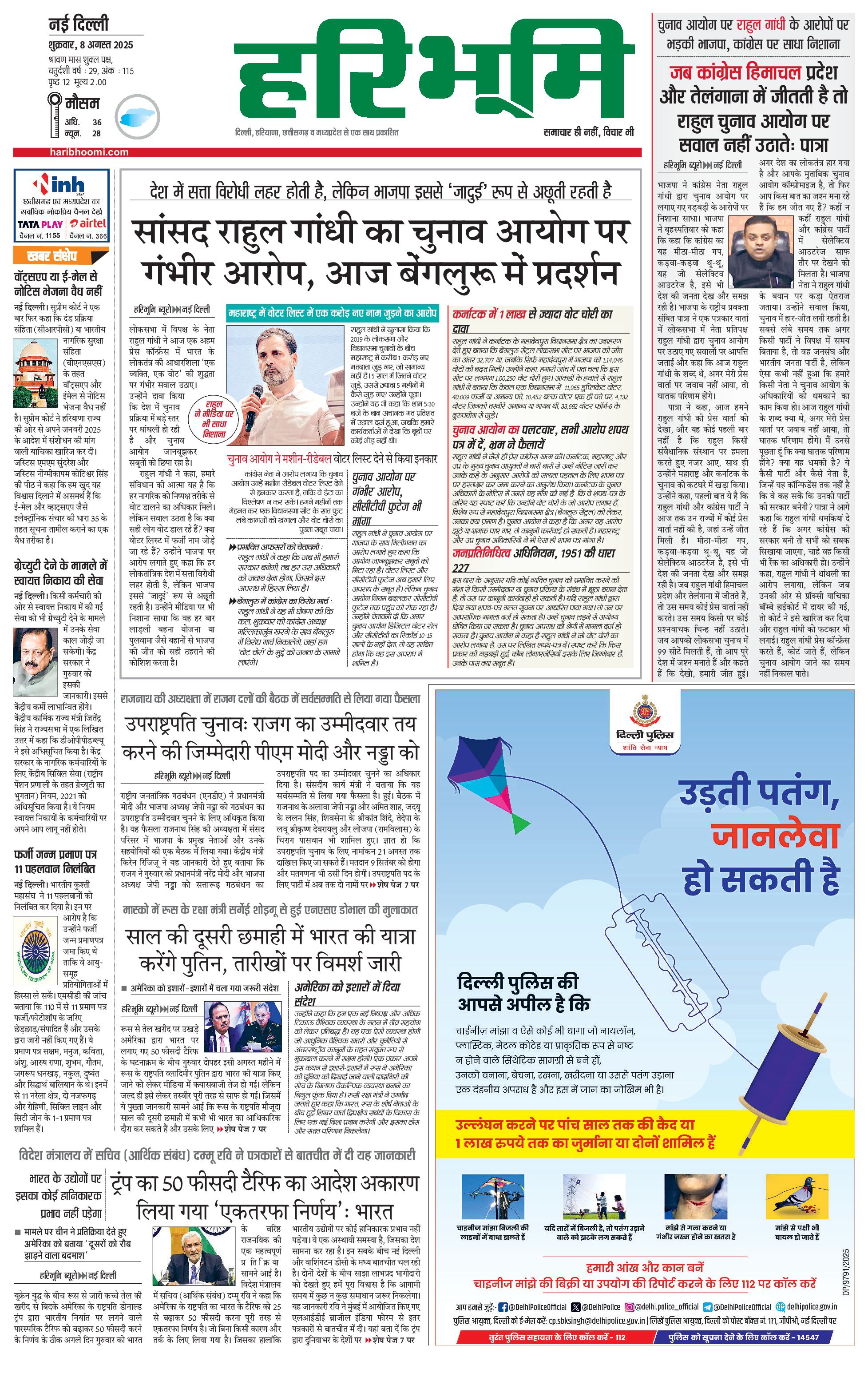 दिल्ली मुख्य संस्करण - 08 Aug 2025 - - Page 1
