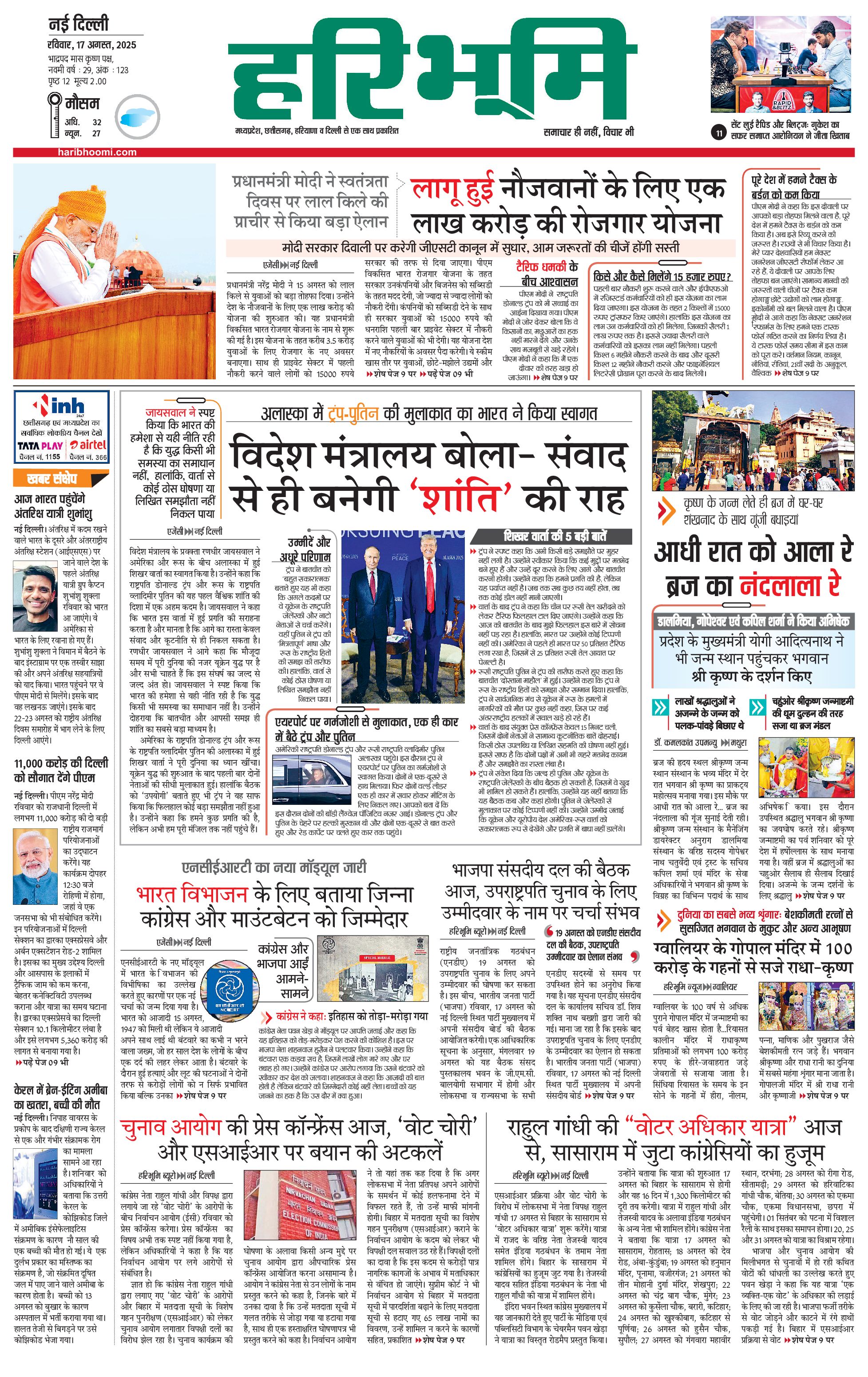 दिल्ली मुख्य संस्करण - 17 Aug 2025 - - Page 1