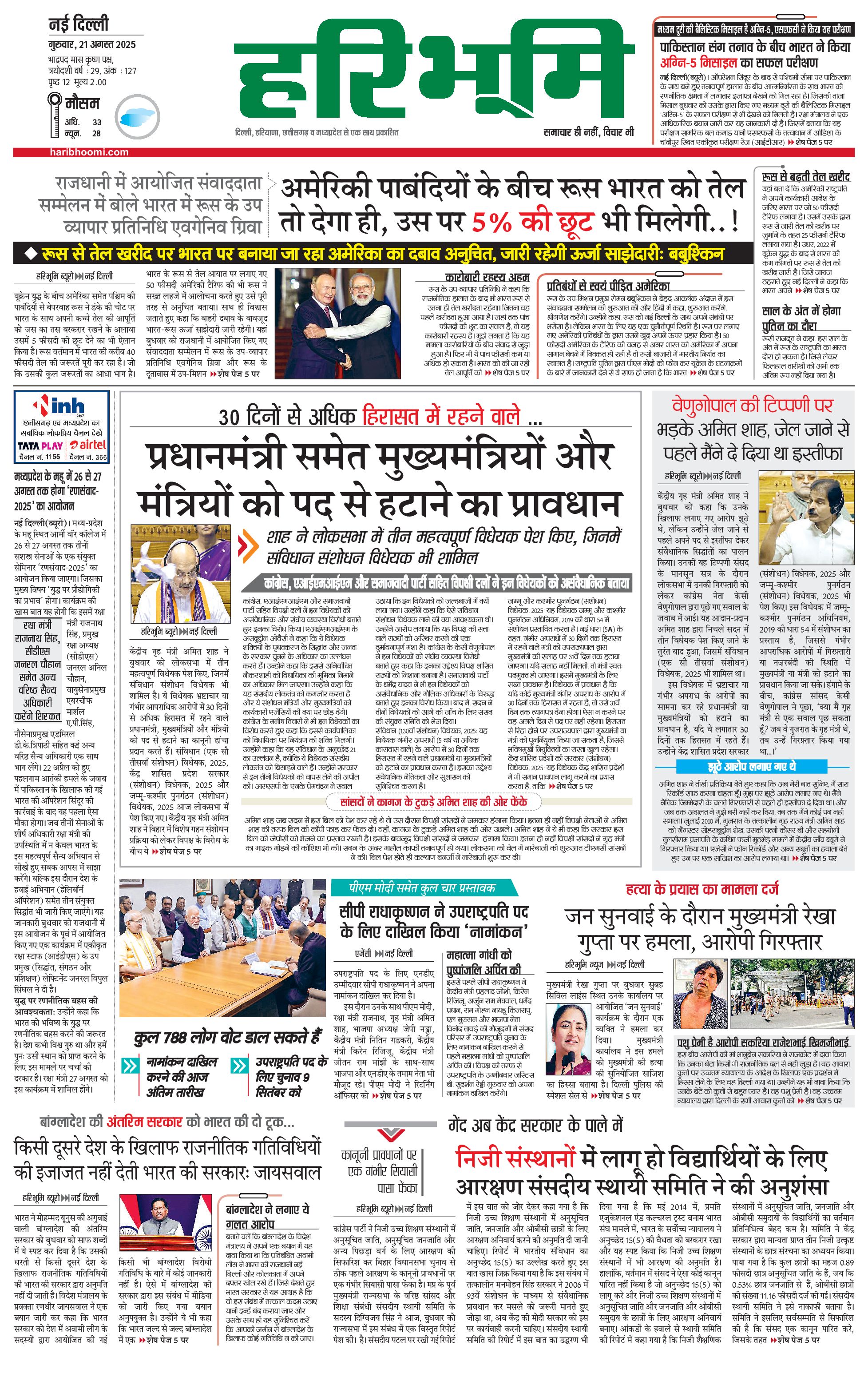 दिल्ली मुख्य संस्करण - 21 Aug 2025 - - Page 1