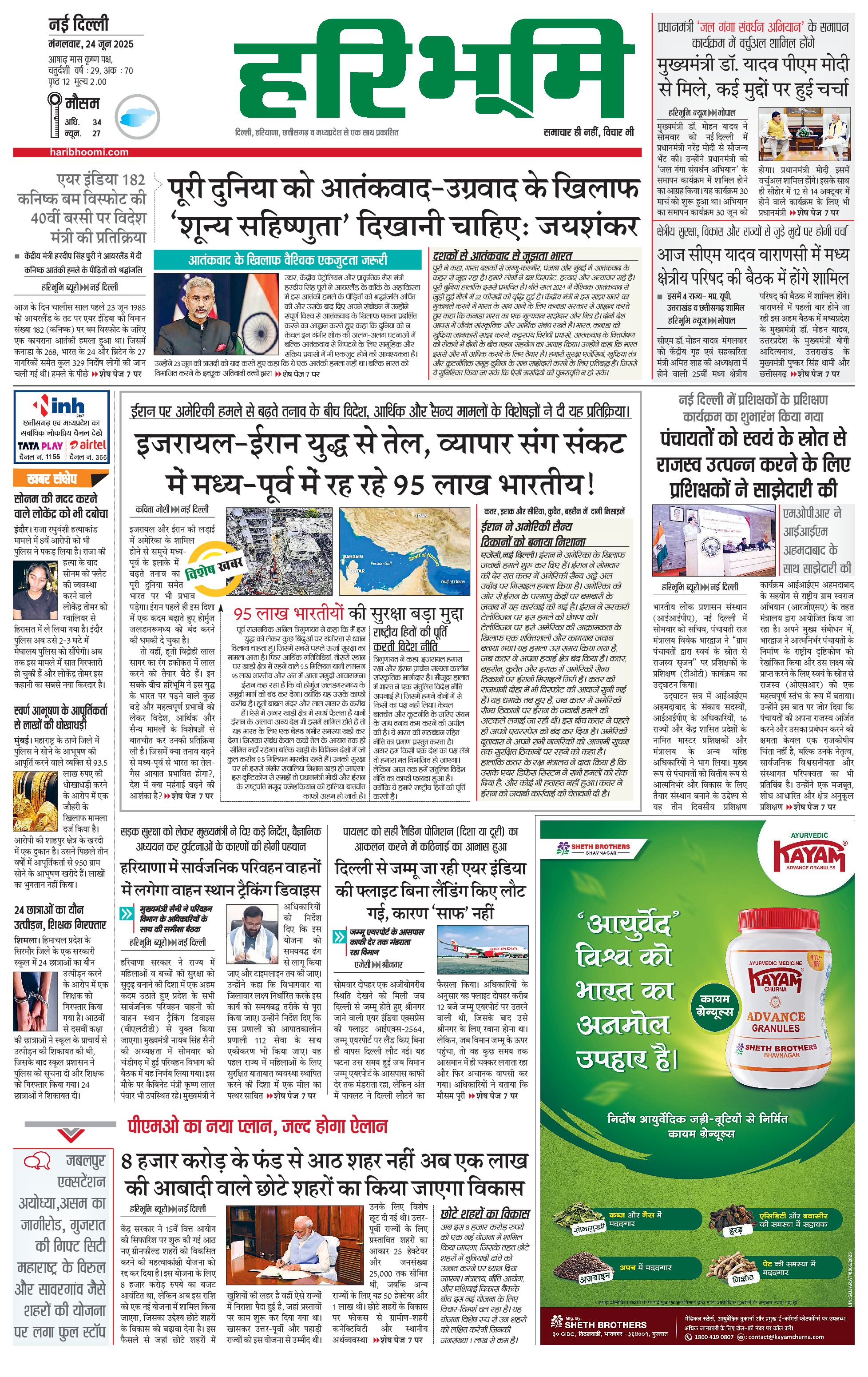 दिल्ली मुख्य संस्करण - 24 Jun 2025 - - Page 1
