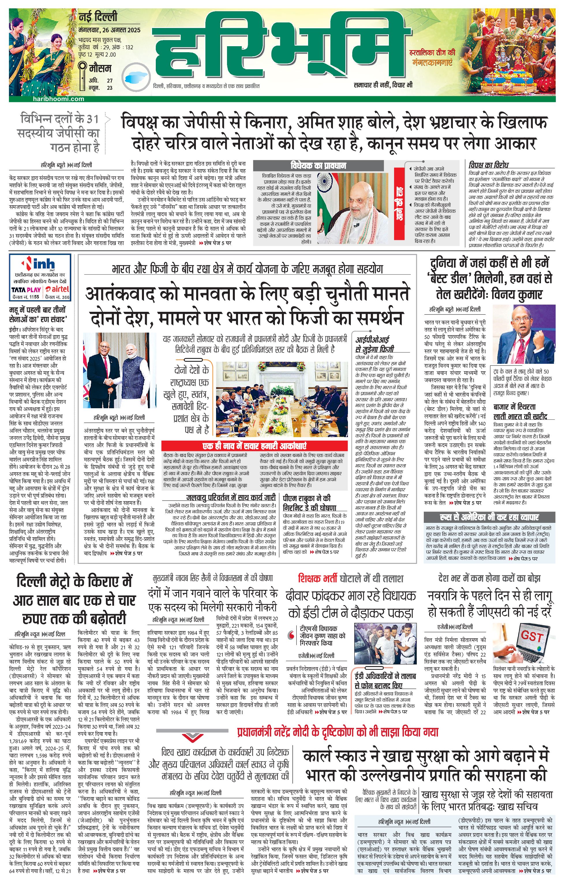 दिल्ली मुख्य संस्करण - 26 Aug 2025 - - Page 1