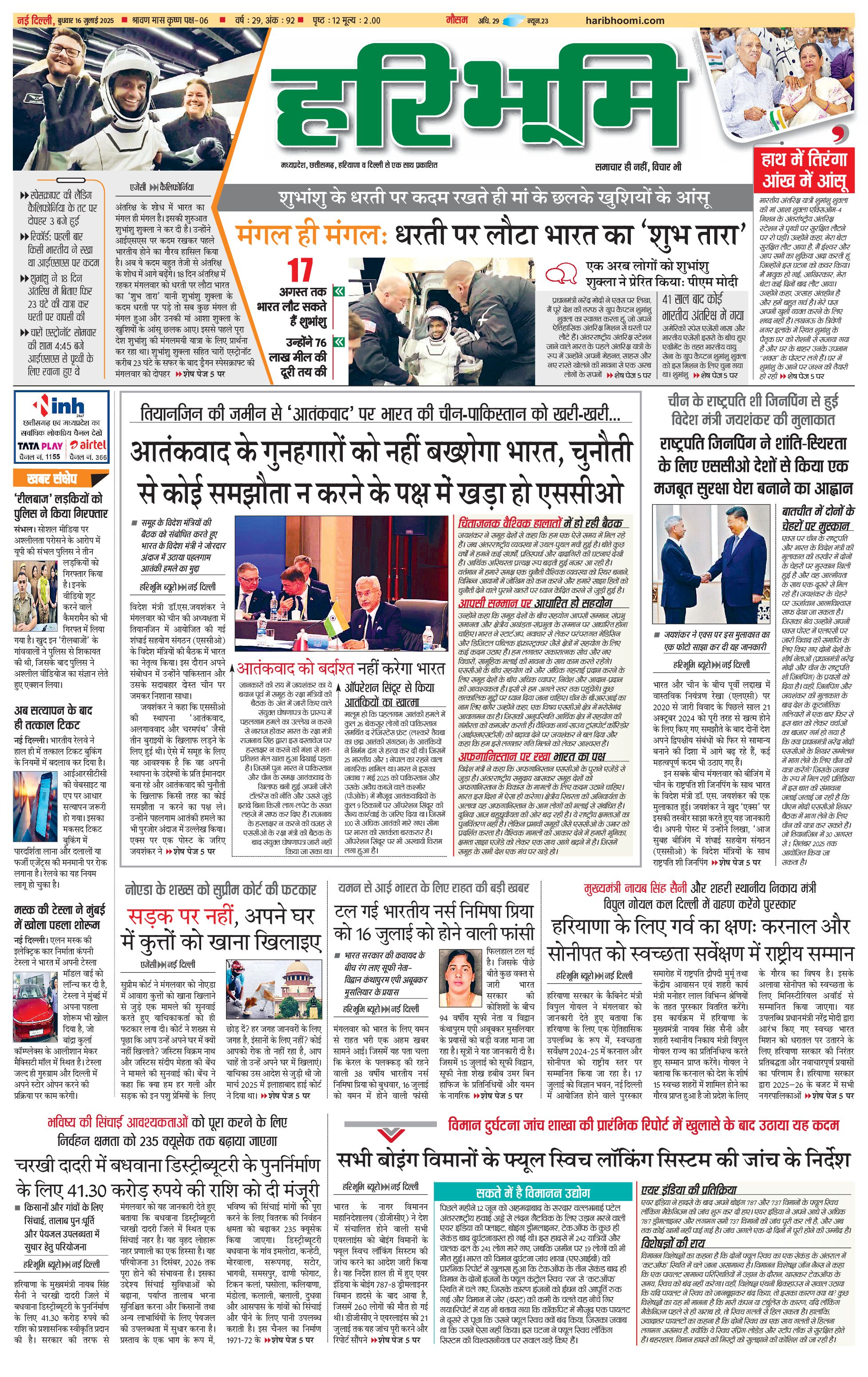 दिल्ली मुख्य संस्करण - 16 Jul 2025 - - Page 1
