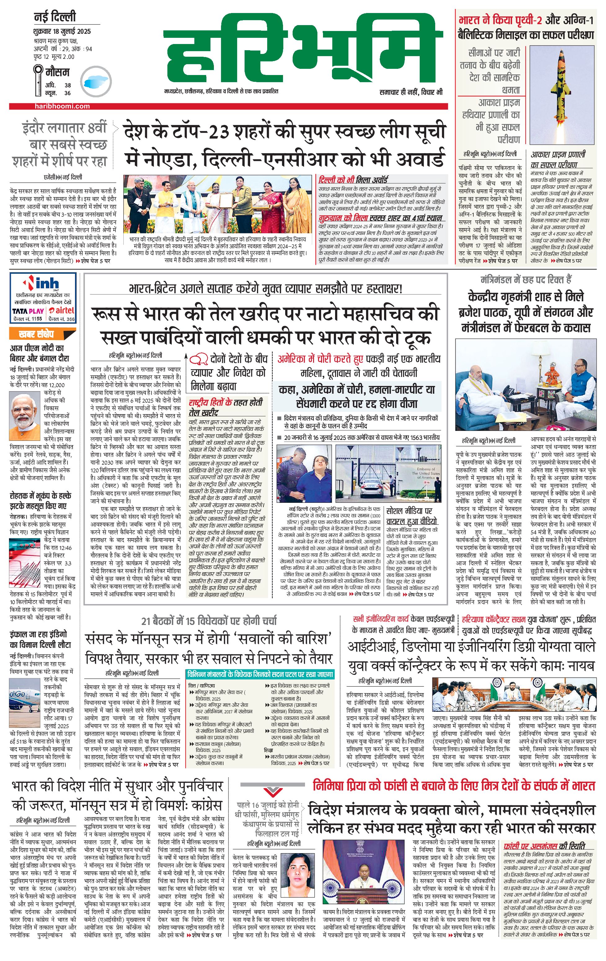 दिल्ली मुख्य संस्करण - 18 Jul 2025 - - Page 1