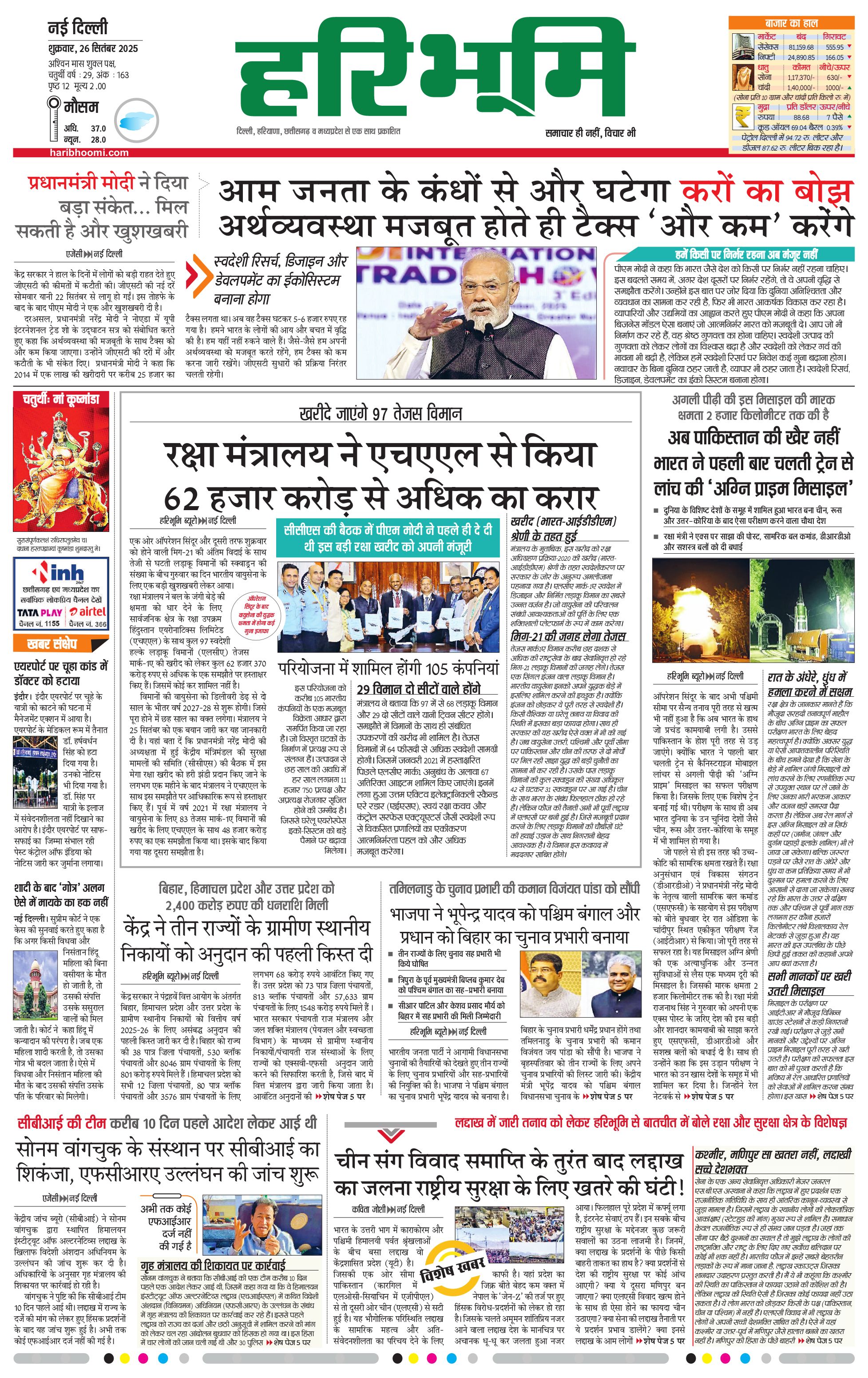 दिल्ली मुख्य संस्करण - 26 Sep 2025 - - Page 1