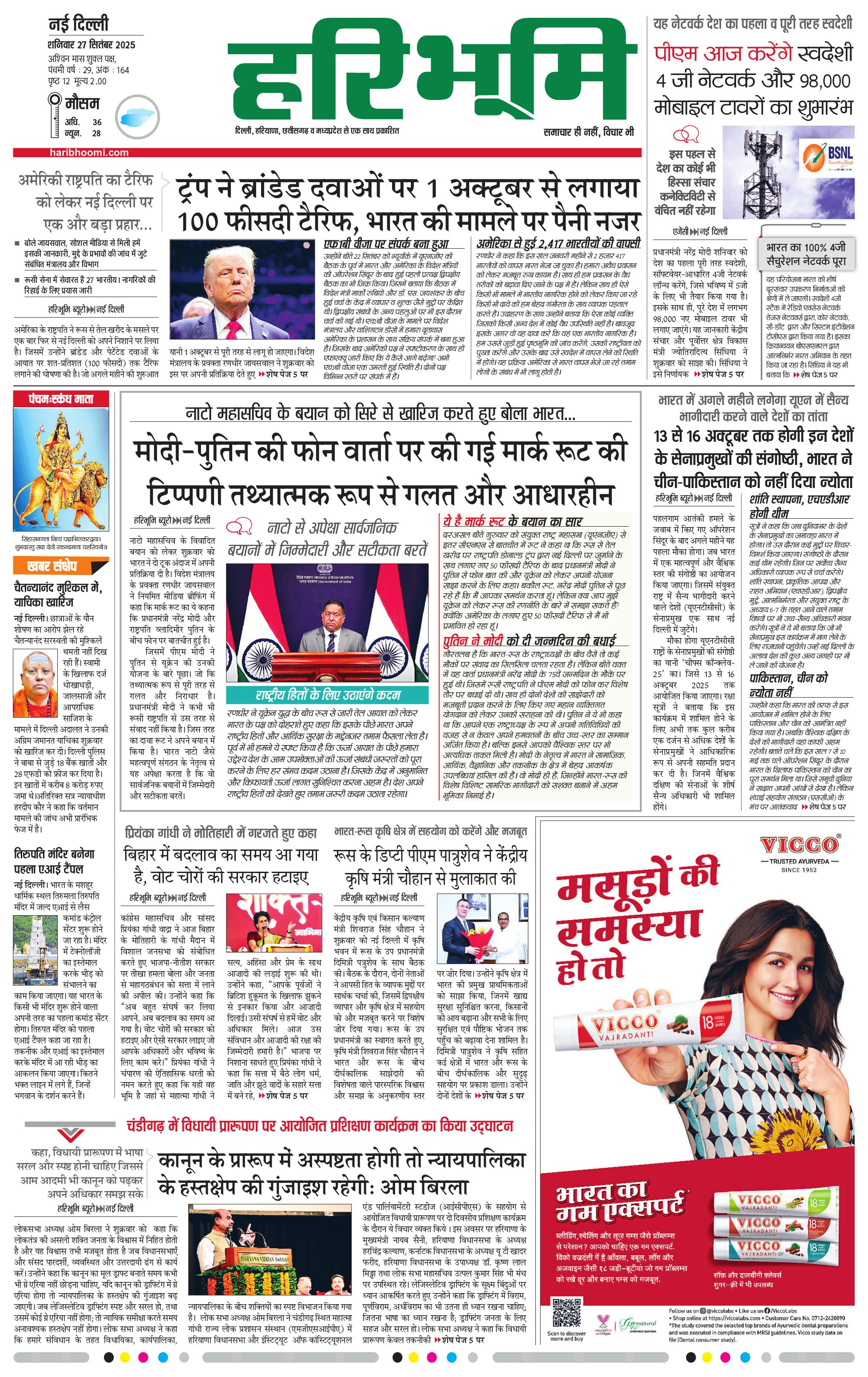 दिल्ली मुख्य संस्करण - 27 Sep 2025 - - Page 1