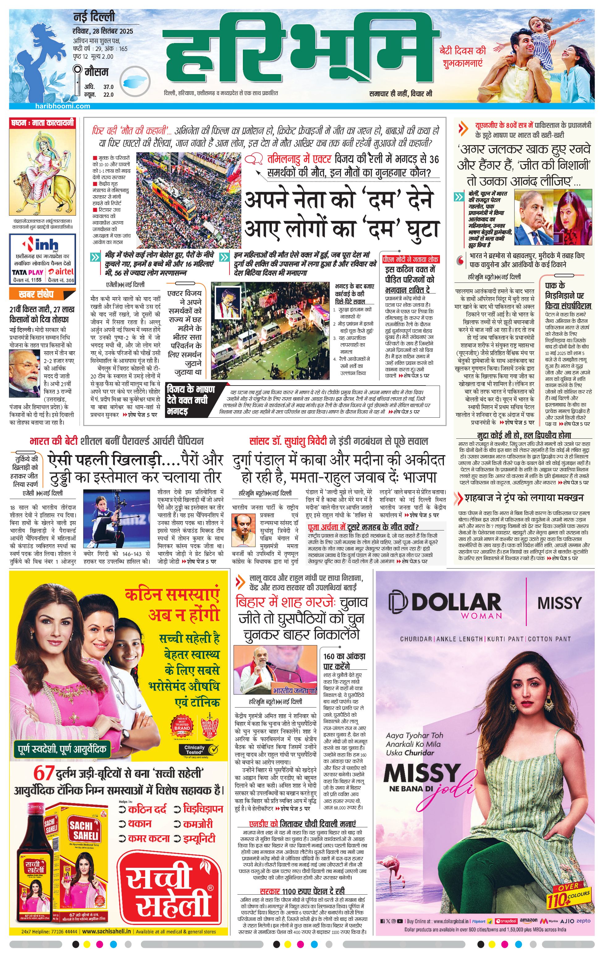 दिल्ली मुख्य संस्करण - 28 Sep 2025 - - Page 1