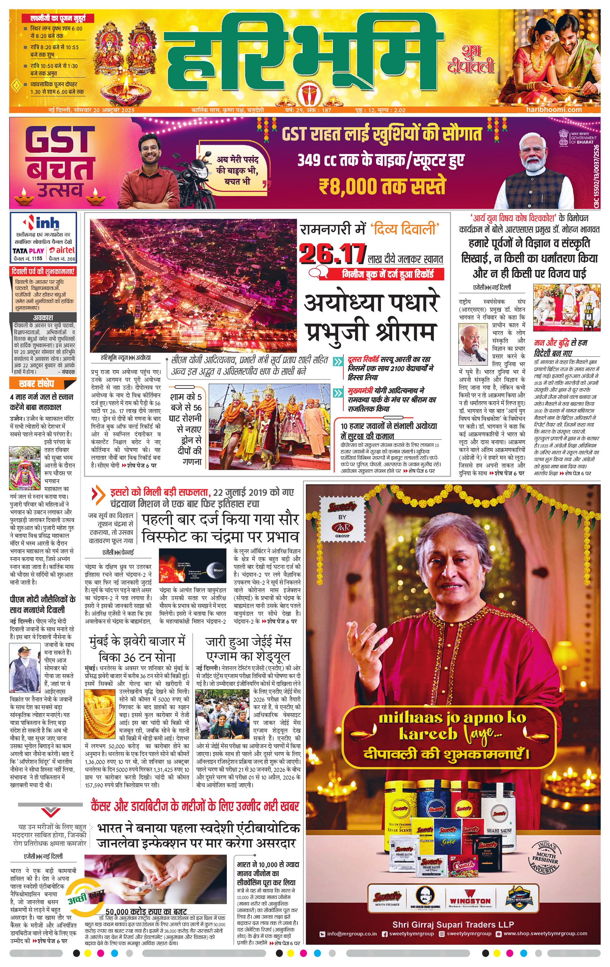 दिल्ली मुख्य संस्करण - 20 Oct 2025 - - Page 1