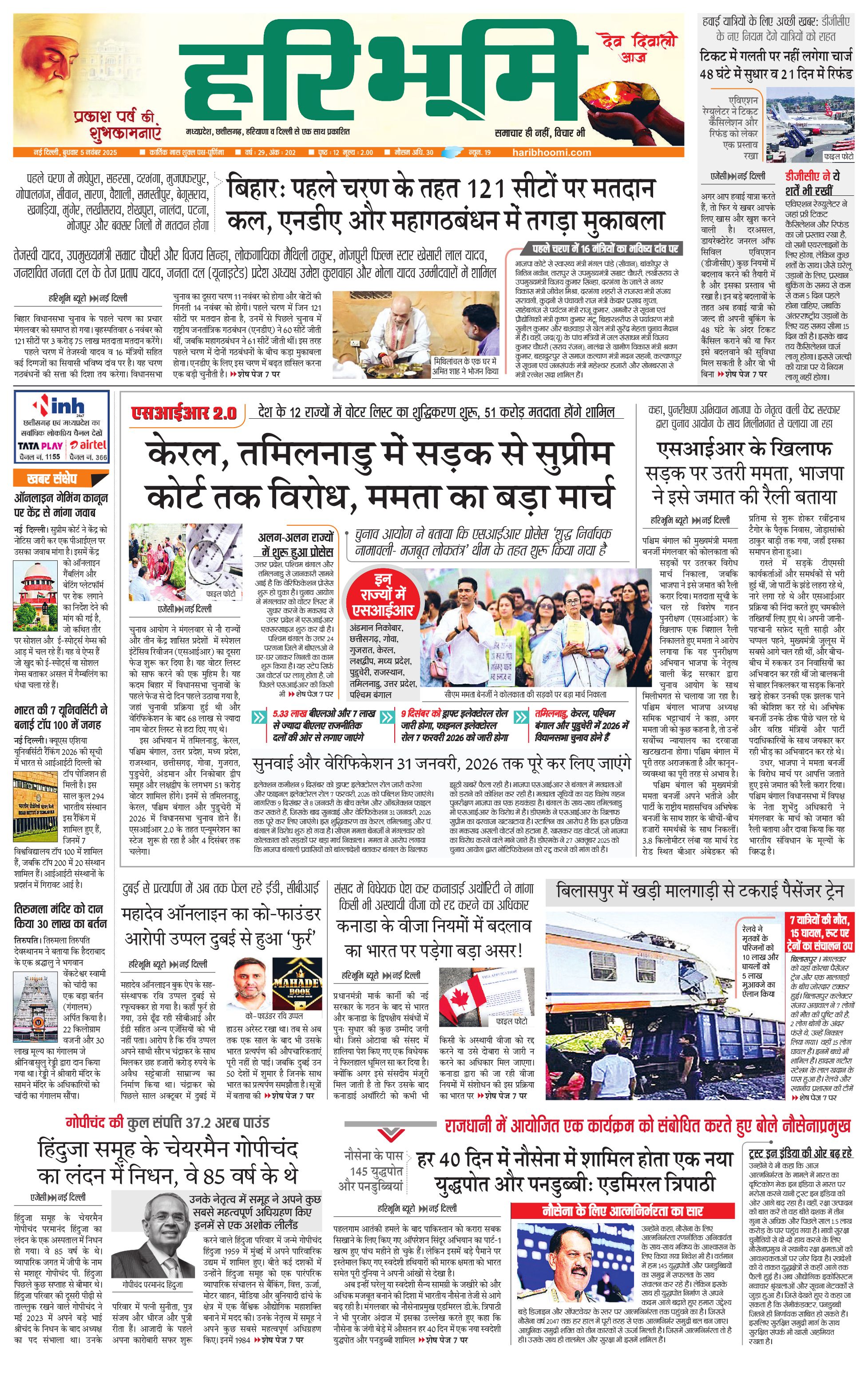 दिल्ली मुख्य संस्करण - 05 Nov 2025 - - Page 1