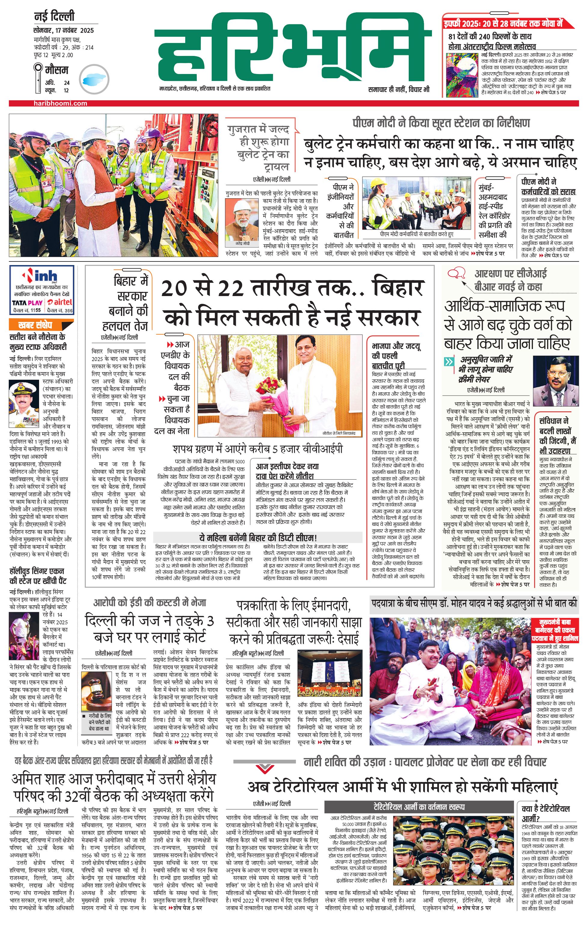 दिल्ली मुख्य संस्करण - 17 Nov 2025 - - Page 1